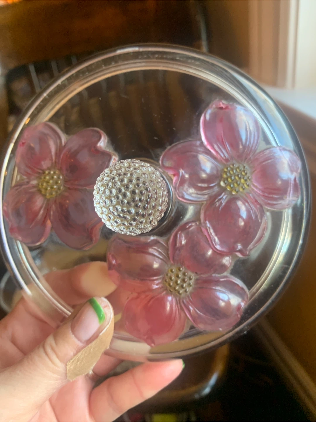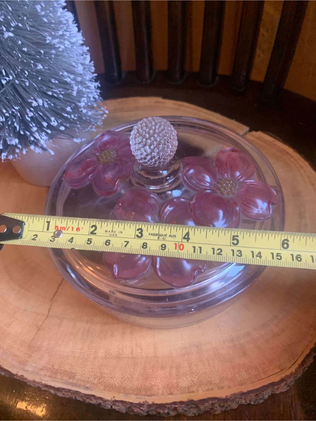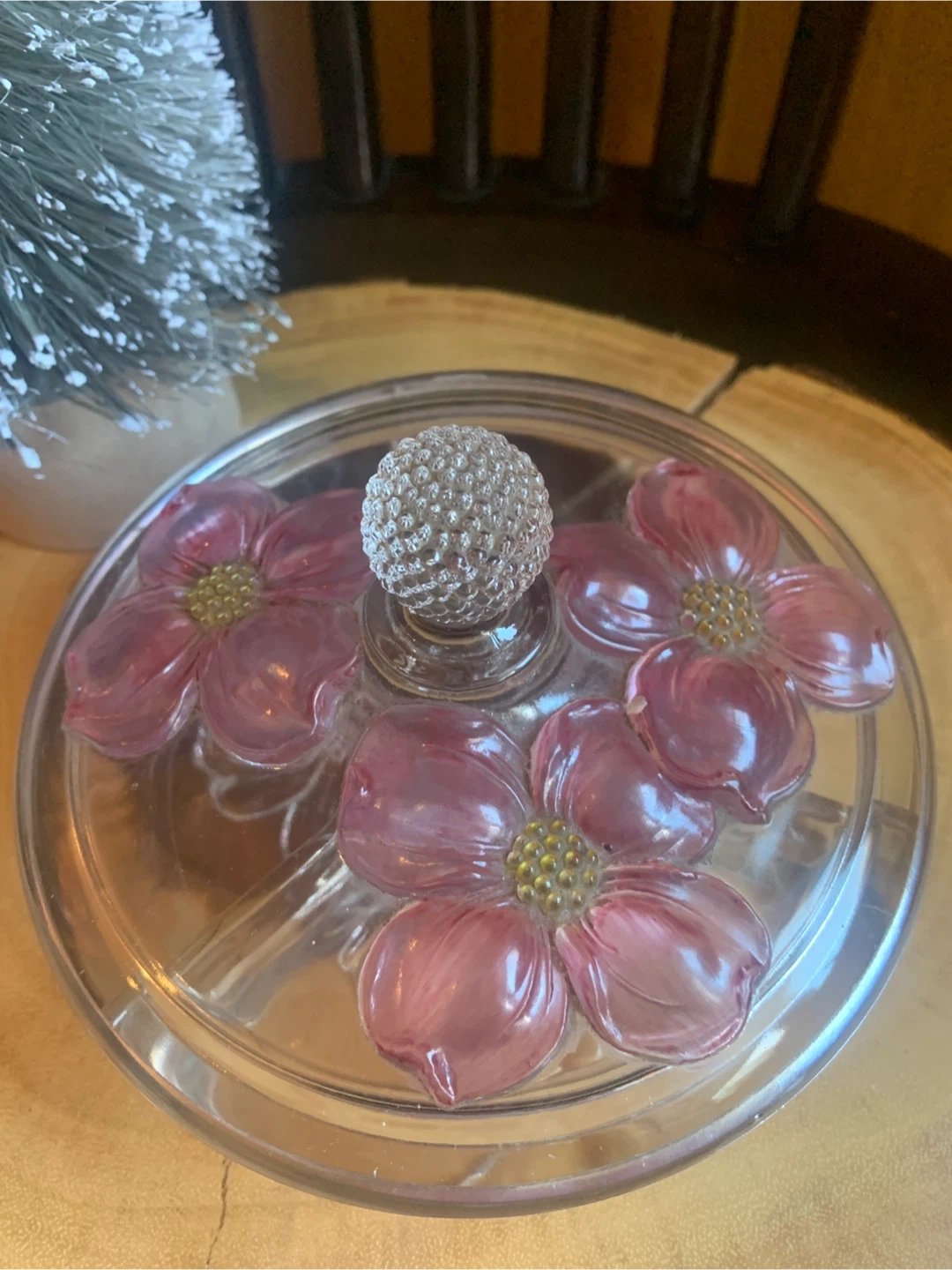 Vintage Glass Candy Dish with Pink Dogwood Blossoms