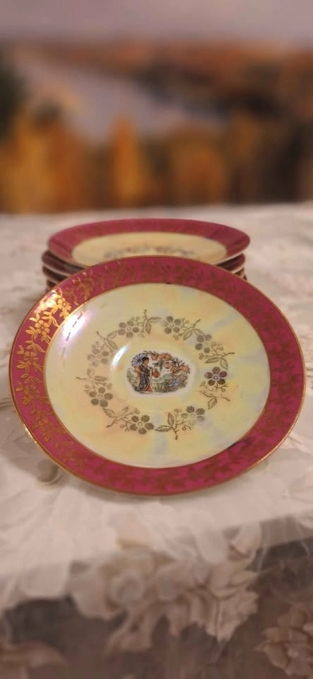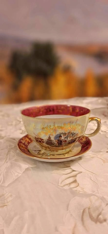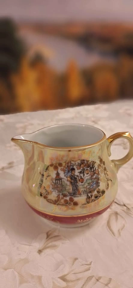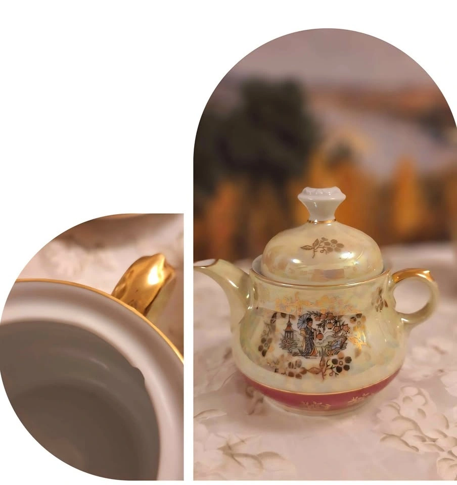 Vintage "Geisha" Porcelain Coffee Set – 30 Pieces. Mother-of- pearl & gold color. Made in East Germany | Limited Edition | Mid-Century Collectible