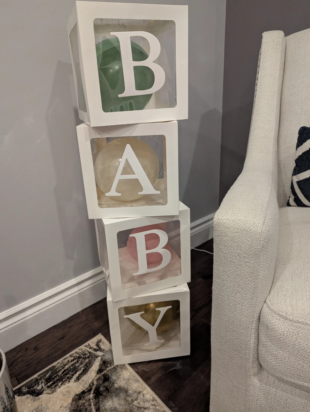 Complete set for a "Oh Baby" themed celebration! Includes "BABY" blocks,cupcake holder, champagne flutes, and party game accessories. Great for creating a festive atmosphere!