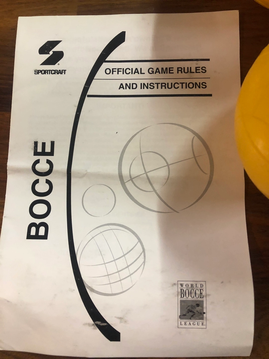 Selling a complete Sportcraft bocce ball set! Comes with all the balls, the pallino (small white ball), the carrying case, and the official game rules and instructions
