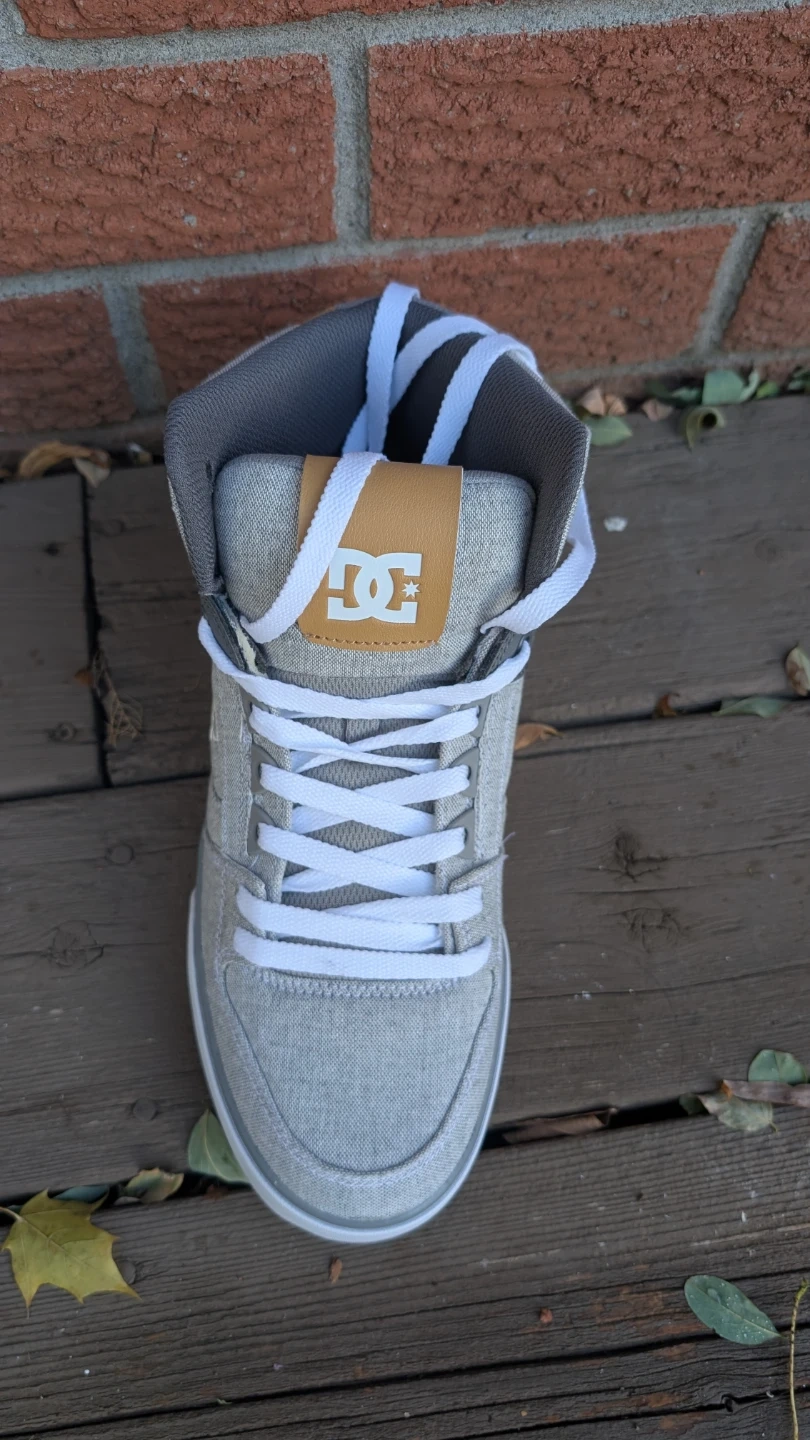 78Selling a pair of DC high-top shoes in men's size 10! They're in great shape and ready for a new home. The shoes feature a stylish grey colour and the classic DC logo. Perfect for skateboarding or casual wear!