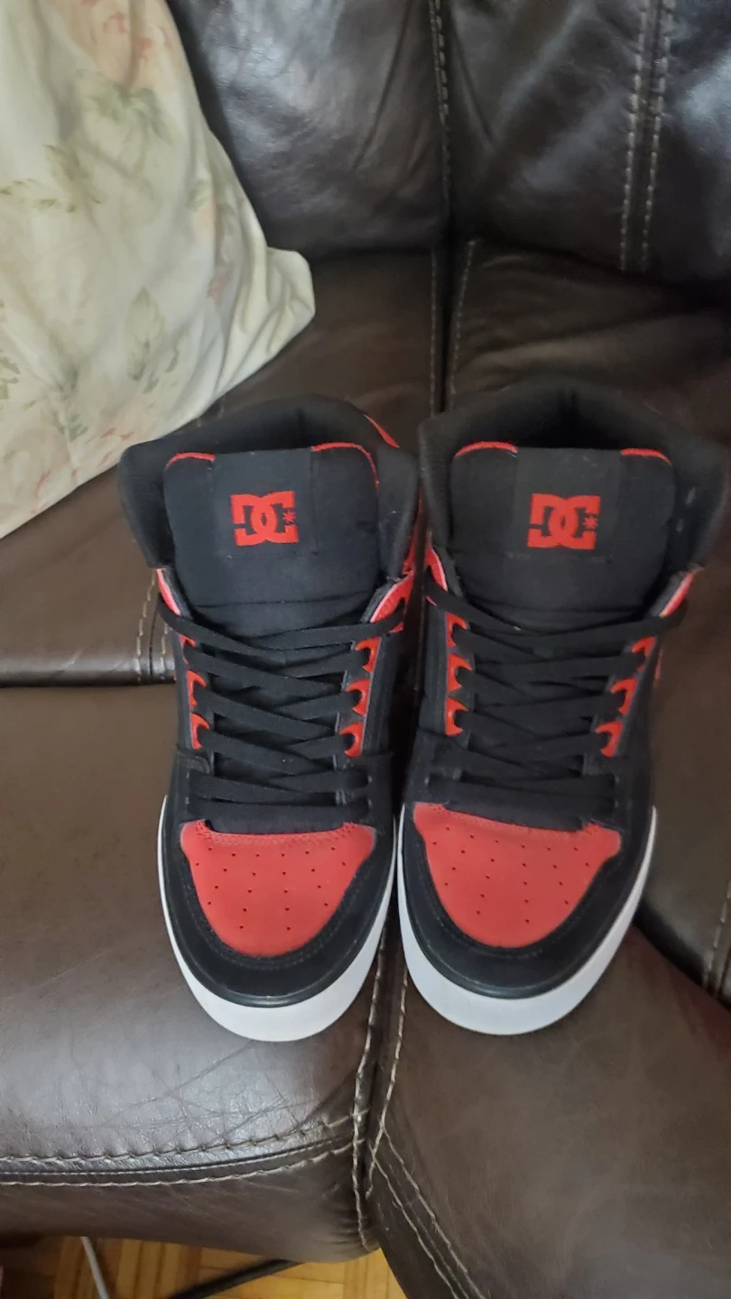 195Selling a pair of DC high-top sneakers in a striking red and black colour combo! They're in great shape, only wore twice and ready for a new home. Perfect for adding a pop of colour to your outfit or hitting the skate park. Must pick up, cash only.