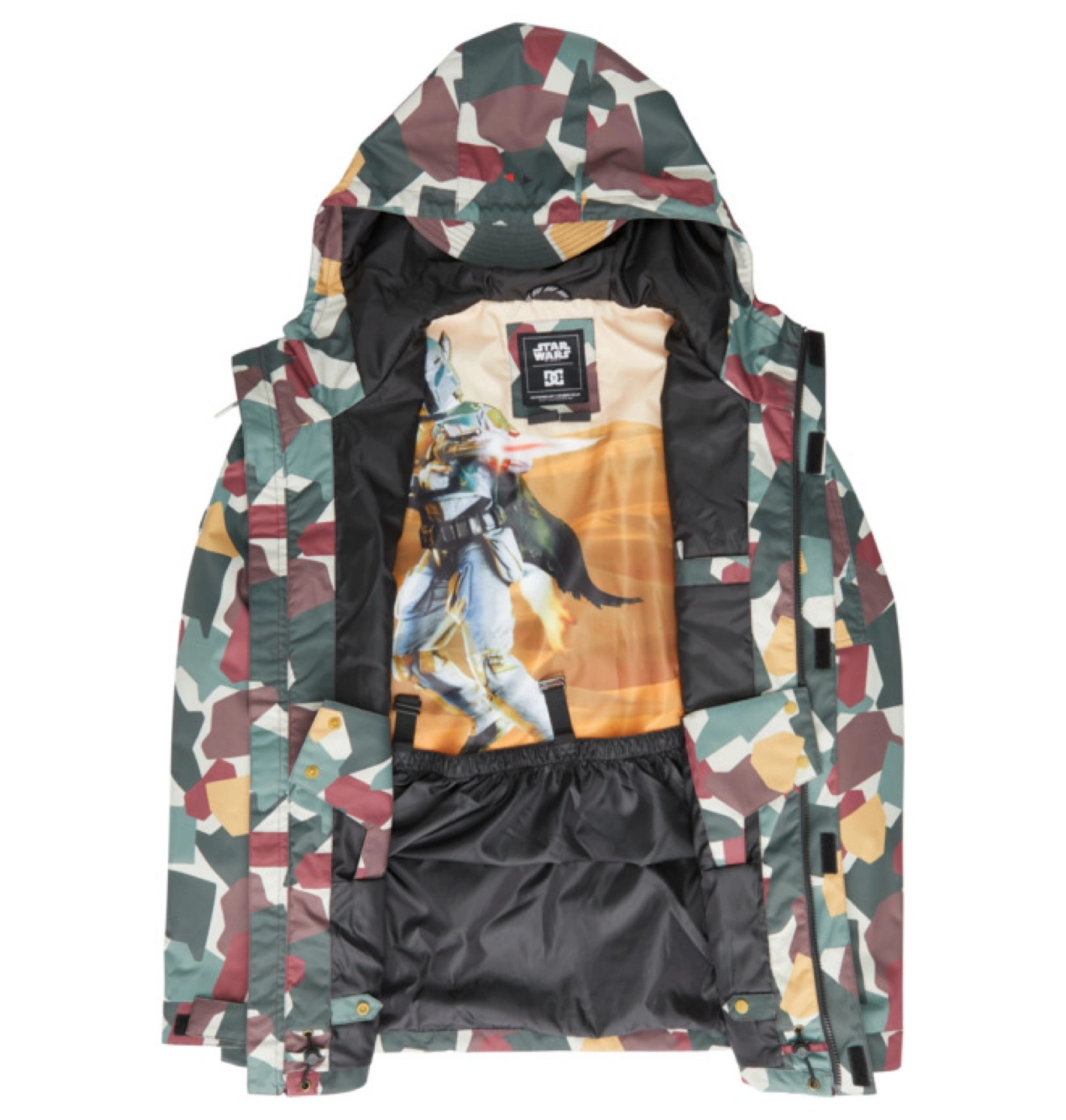 Selling a DC x Star Wars snow jacket in size small! This jacket has a cool camouflage pattern and a Star Wars Boba Fett lining. It's waterproof with 10K waterproofing. Originally bought for CAD $299.95