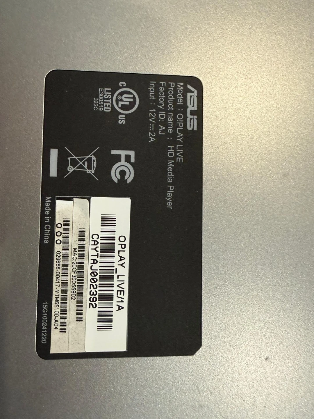 Selling an ASUS O!Play Live HD Media Player in good working condition.