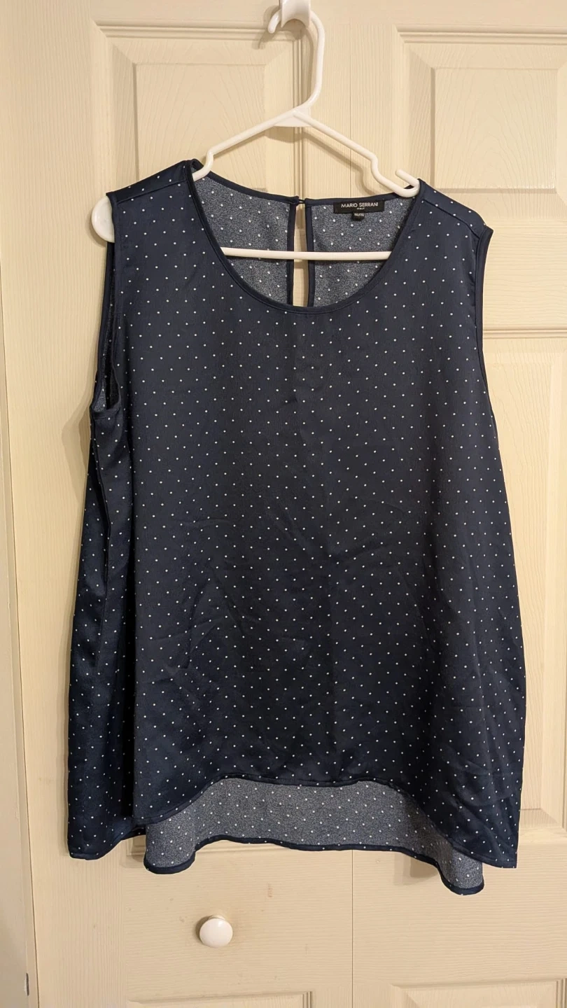 Mario Serrani navy blue with polka dots blouse, size XXL