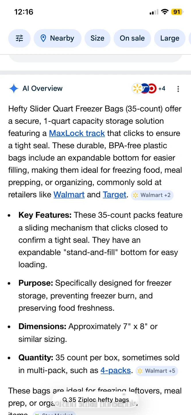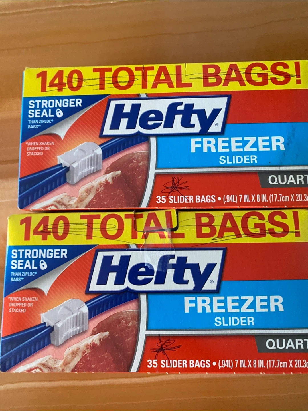 This pack includes 2 boxes of Hefty Slider Quart Freezer Bags, with 35 bags per box for a total of 70 bags. They feature a stronger seal with a MaxLock slider that clicks closed to confirm a tight seal. The bags are BPA-free