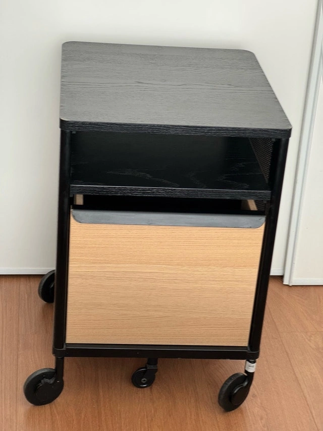Tuck things away in your office or bedroom with this IKEA Bekant storage unit. It rolls around easily on wheels. Details: WDH 41x45x61 cm. Ash veneer drawer and oak veneer drawer front. Includes floating drawer insert and wheels. Asking $55 o.b.o.
