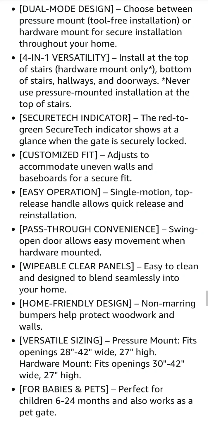* 4-in-1 versatility: Install at the top of stairs, bottom of stairs, hallways, and doorways.