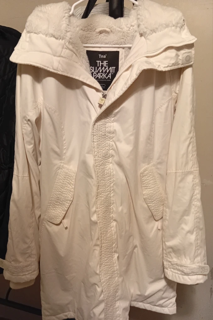 Selling a Tna The Summit Parka in size L. It is a beautiful cream colour and is perfect for the cold weather! The parka has a fur-lined hood for extra warmth and comfort.