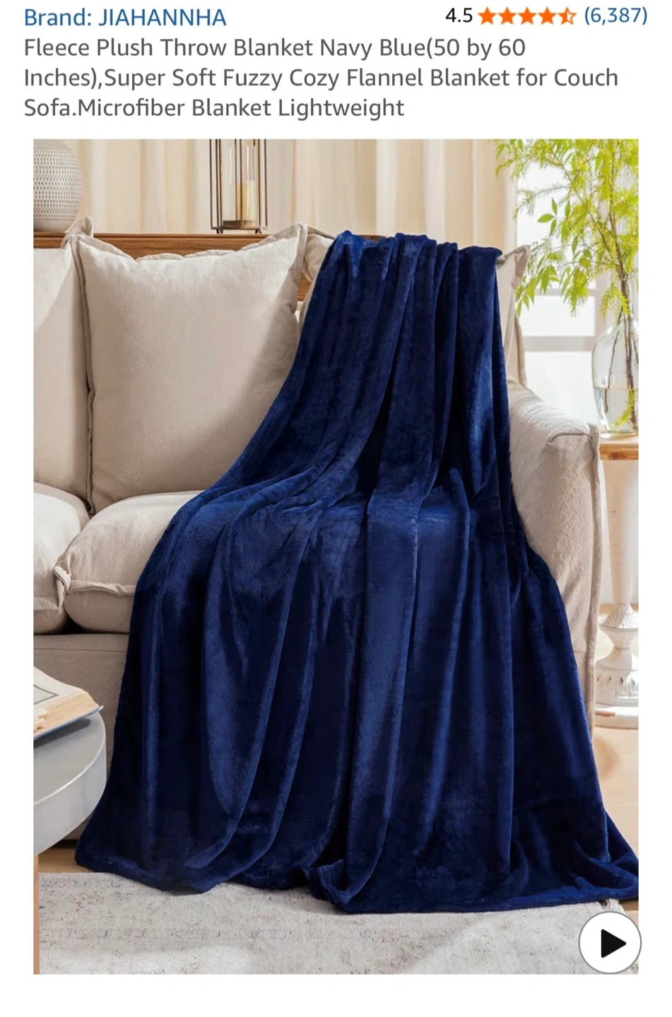 50x60” Throw Blanket Navy Blue Fleece Plush - NEW