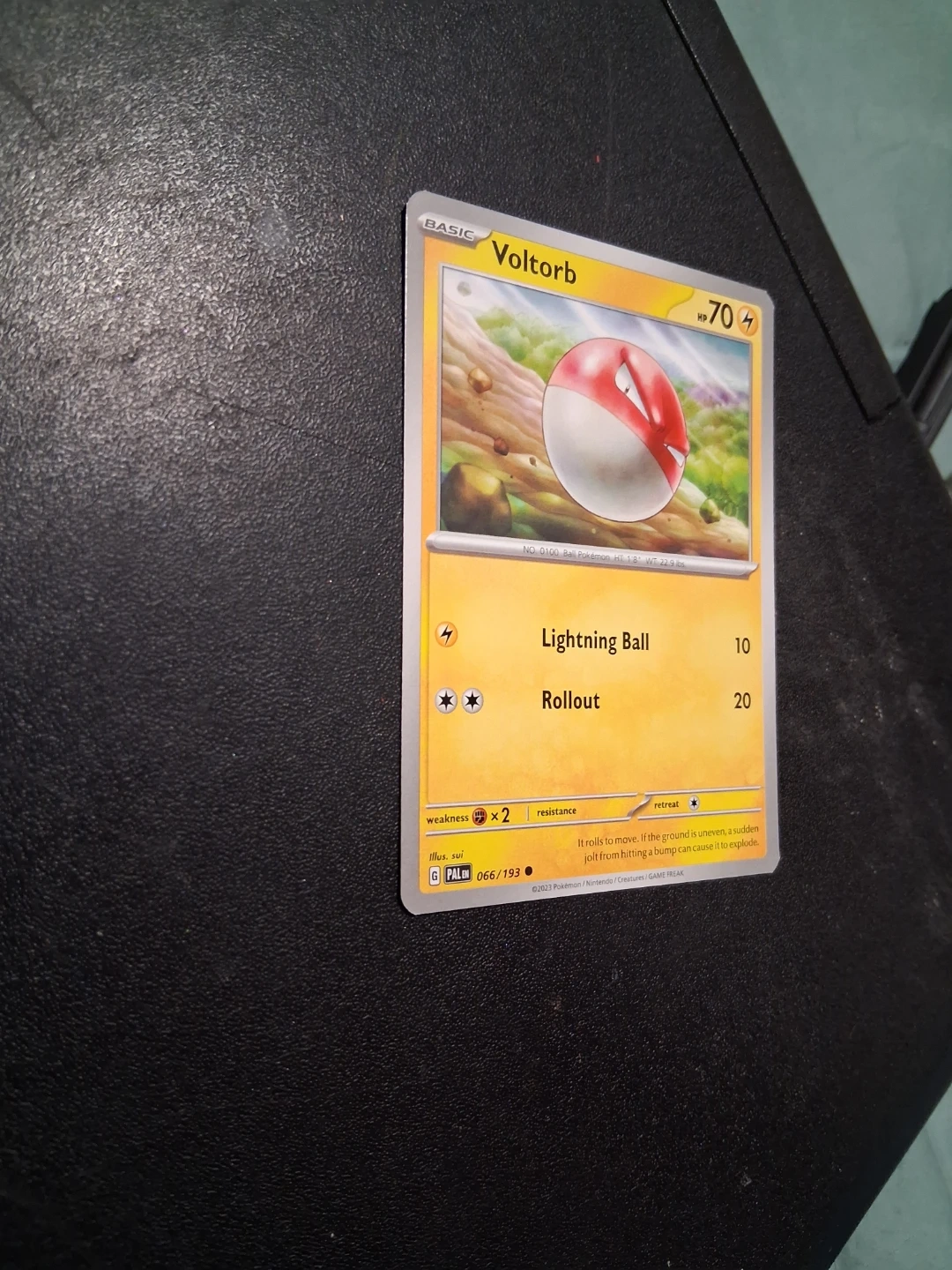 This is a basic Voltorb Pokémon card, number 066 out of 193. It has 70 HP and two attacks: Lightning Ball for 10 damage and Rollout for 20 damage. It also has a weakness to Fighting type attacks.price is not firm open to offers