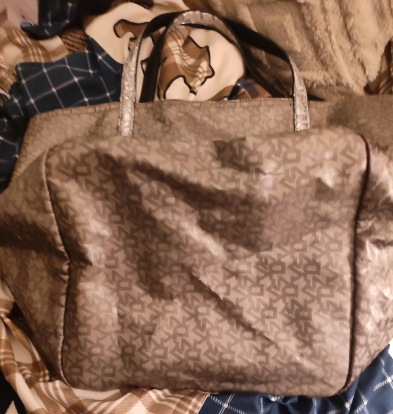 Large tote bag 20.5 inches across, 13.5 tall(not including handles), bottom 11 inches W, opening 17 inches W. Three storage sleeves/ pockets inside one that is zippered. NS, small dog home. PU 216th & Lougheed Hwy or Langley Centre on Thursday's 930-1230.
