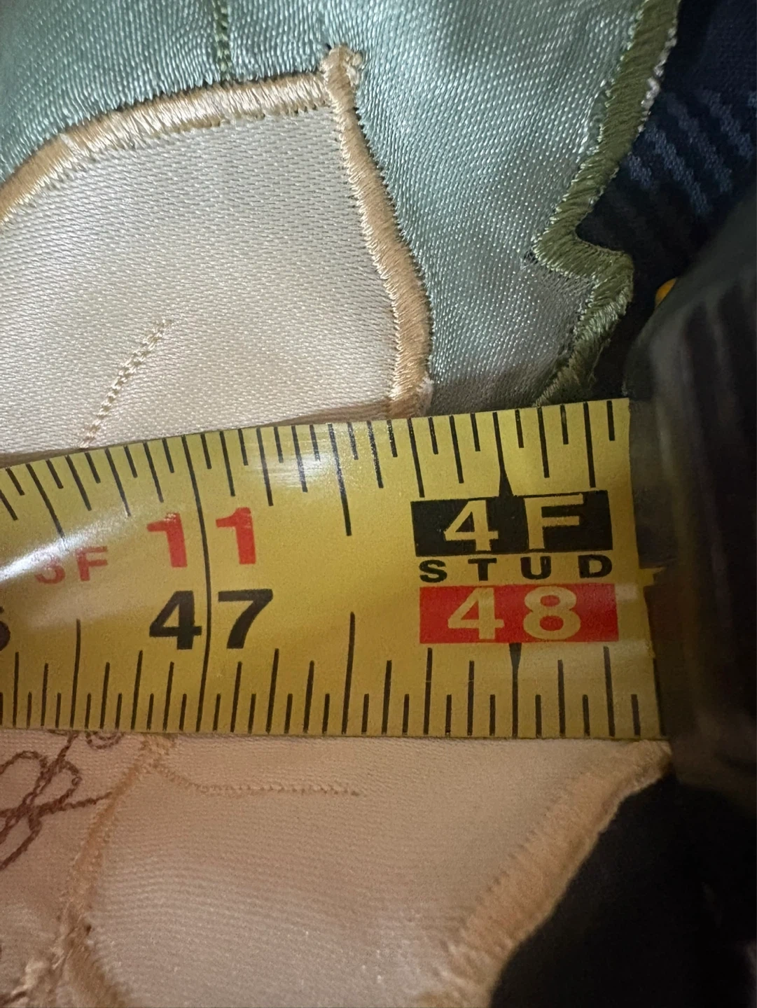 Measures approximately 67 inches by 48 inches. Features a delicate green leaf embroidery on a cream-coloured fabric. Suitable for crafting or decorative accents.