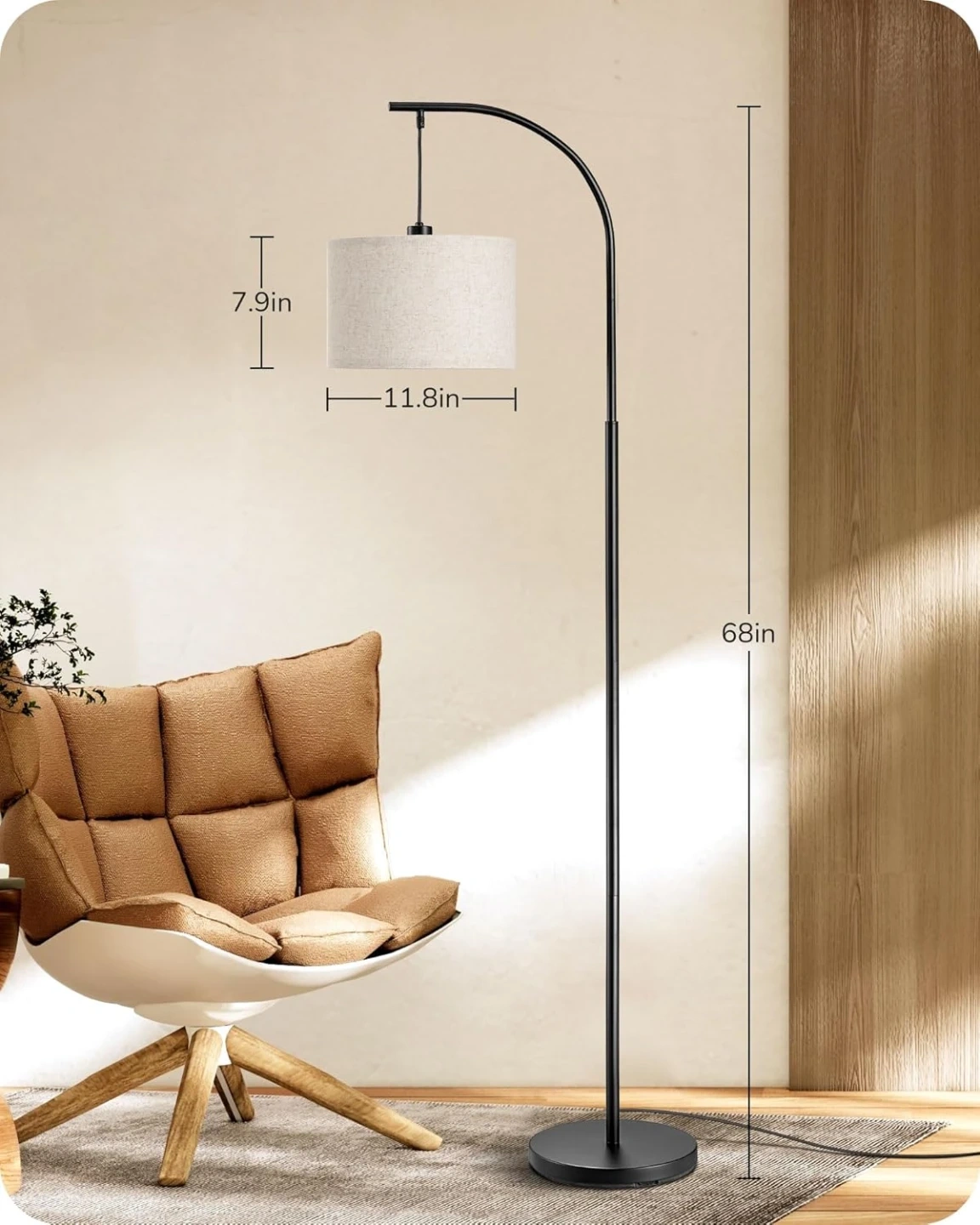 NEW DISHINE Modern Arc Floor Lamp with Beige Linen Drum Shade-55