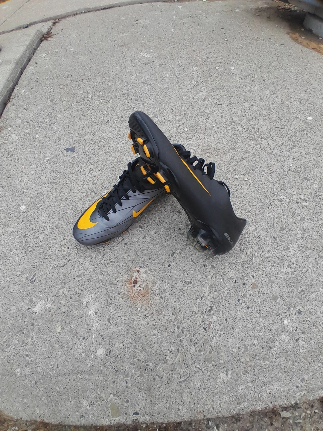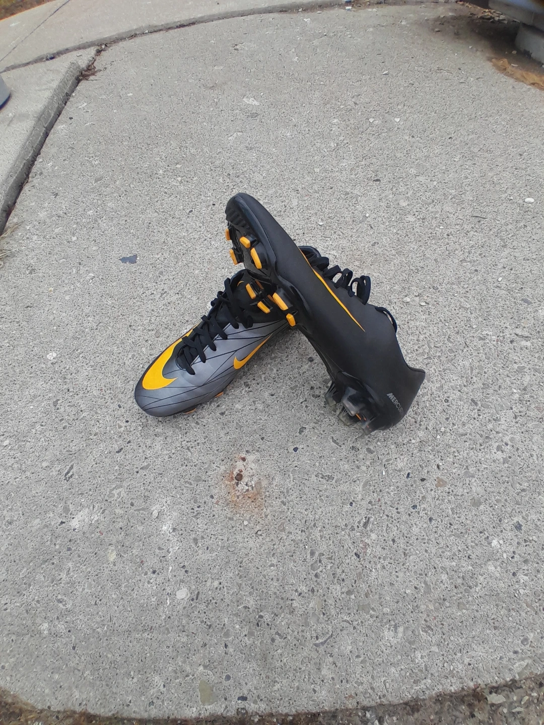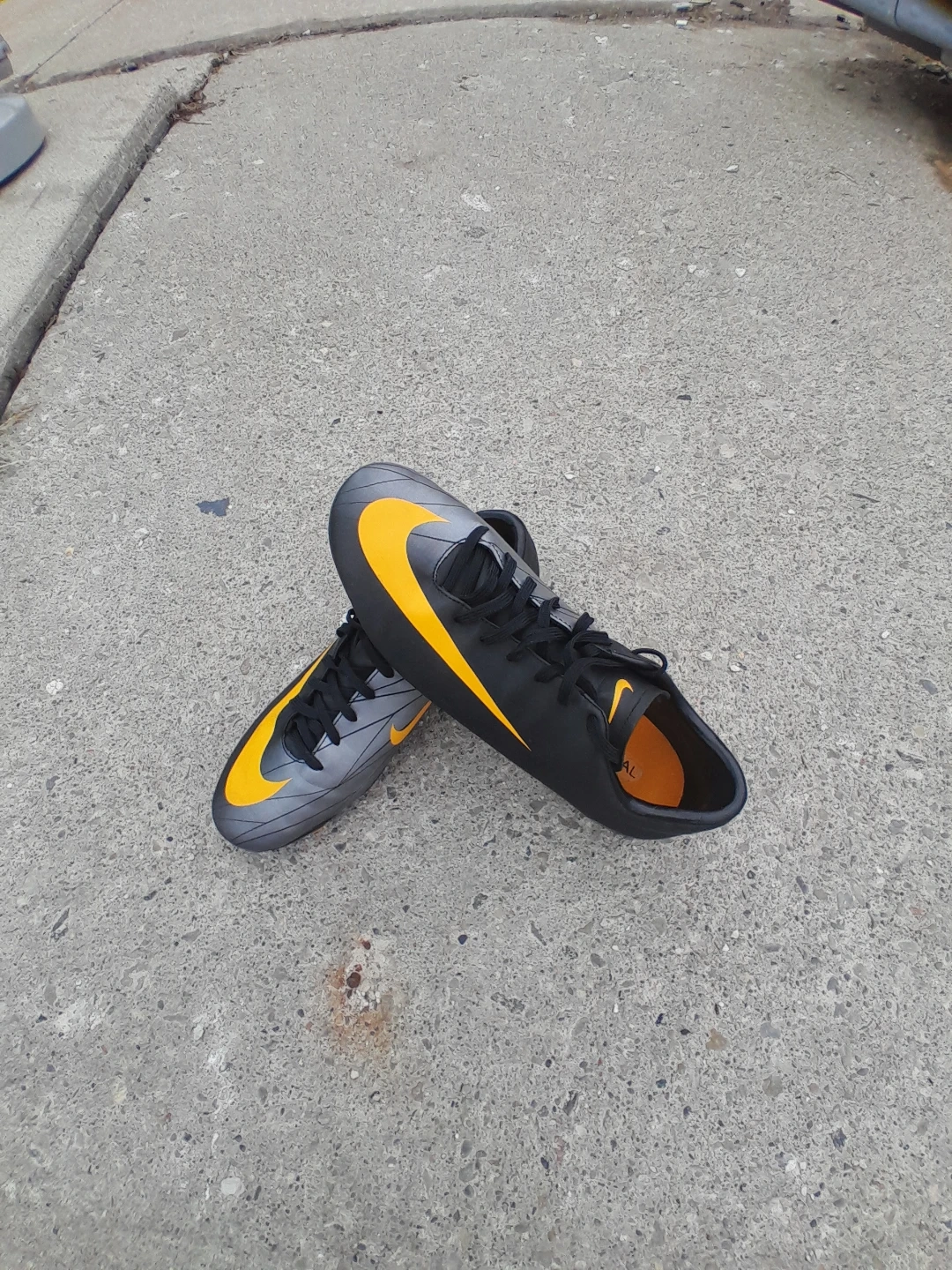 Nike Mercurial soccer cleats. These cleats are designed for soccer performance. They feature a synthetic upper and a durable outsole men's size 9.5