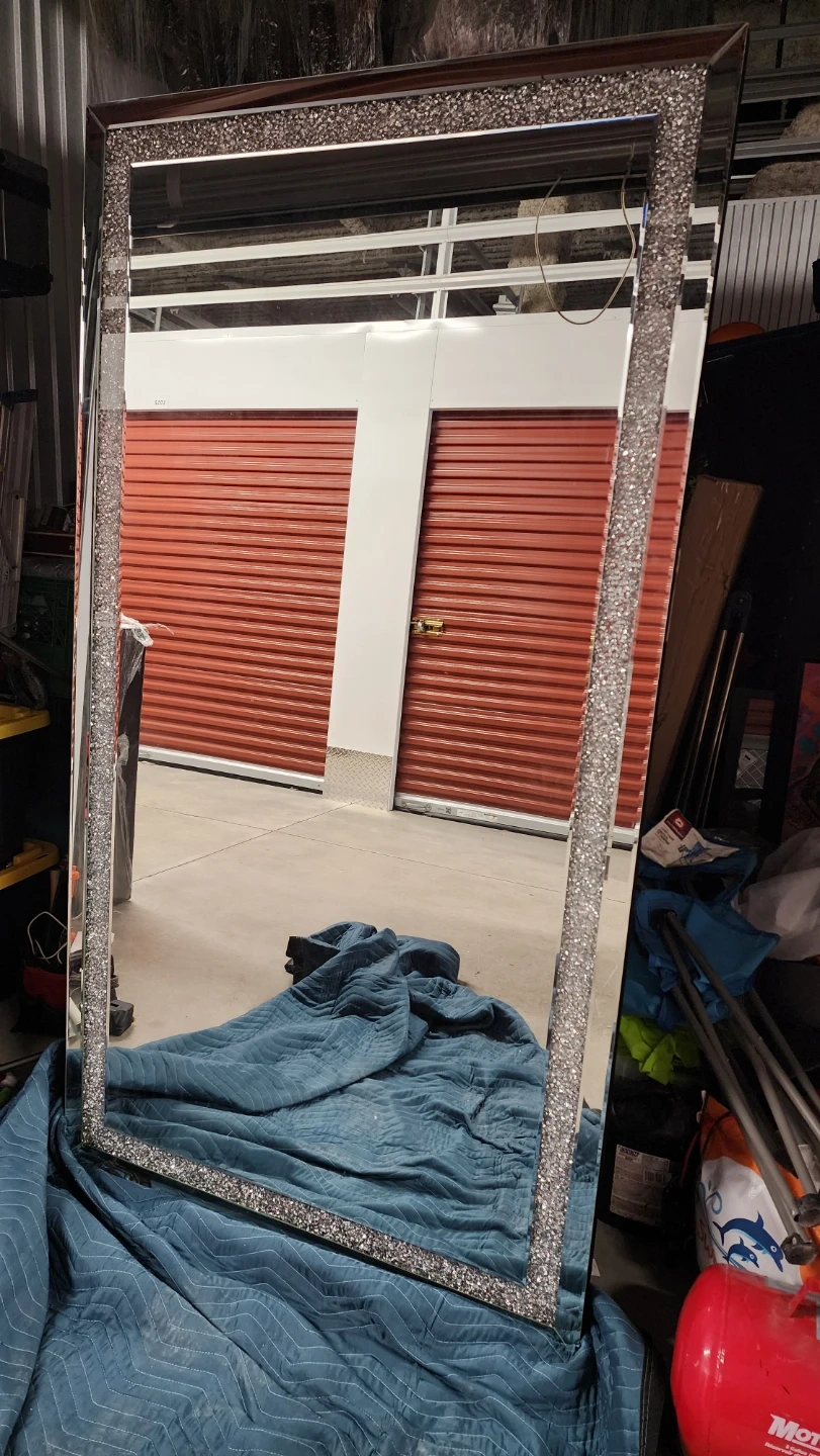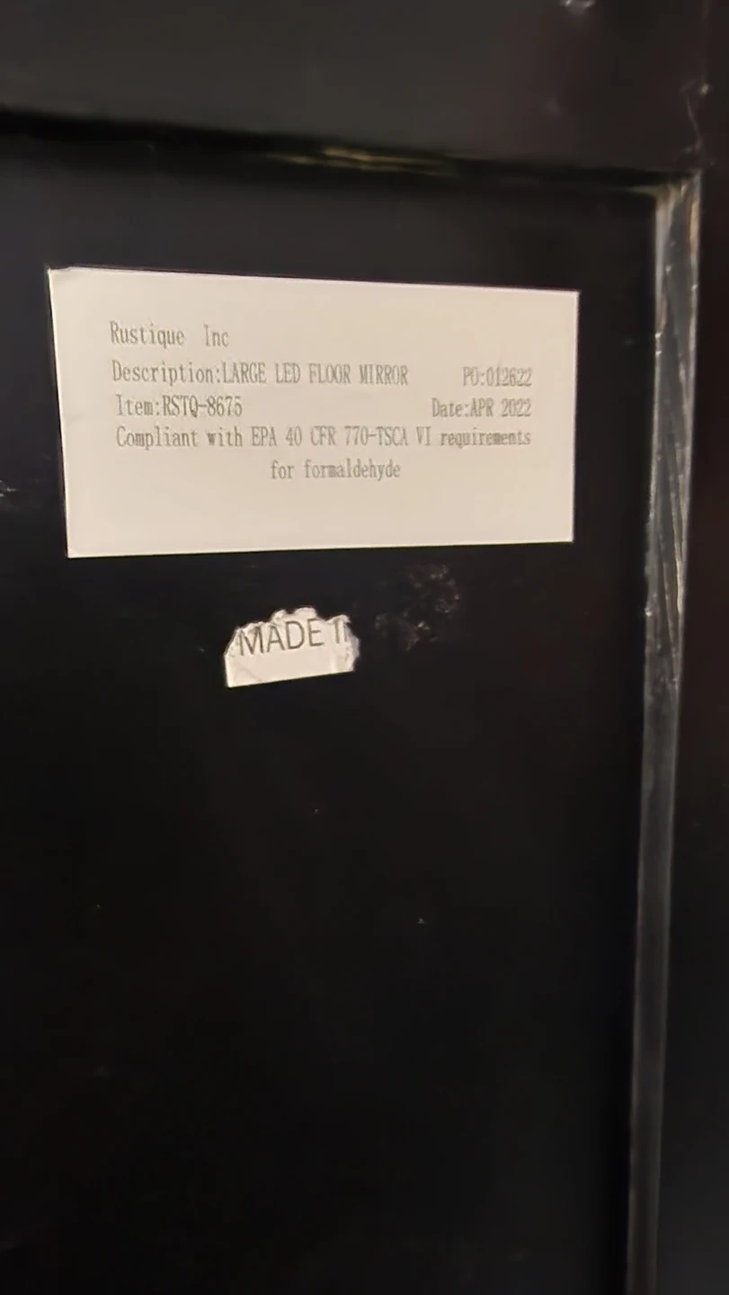 This is a large LED floor mirror from Rustique Inc. It's compliant with EPA 40 CFR 770-TSCA VI requirements for formaldehyde. It's a great statement piece for any room!