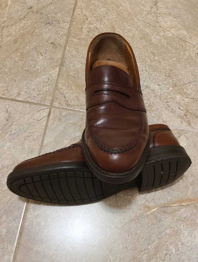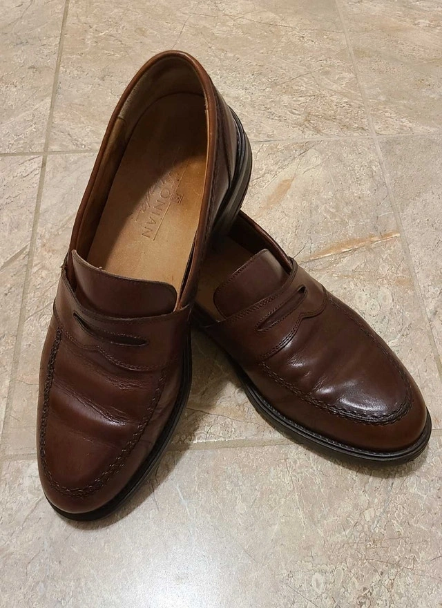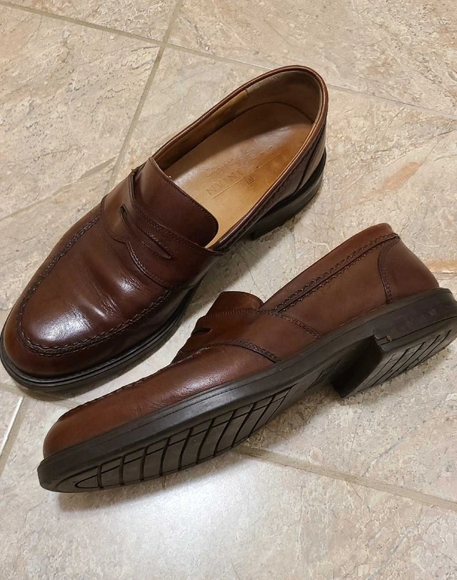 Men's brown leather Bostonian Strada dress loafers. Made in Italy. Size 10 medium width but fit a little larger, closer to 11. Good quality and in nice condition. For sale by owner. Cash accepted.