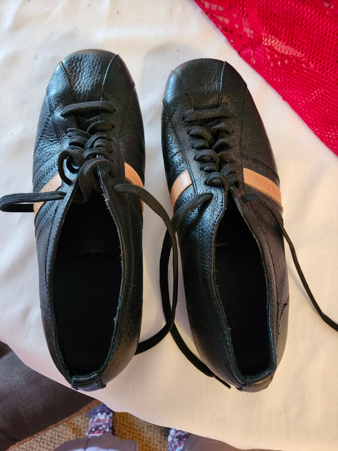 Selling a pair of Prada black leather sneakers in size 38. They are in good condition and ready for a new owner!