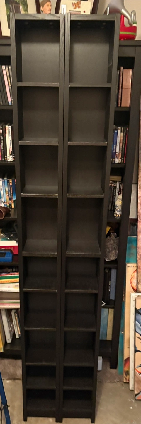 Selling a set of two dark brown bookcases. They're in great shape and ready to hold your favourite books or display items. Perfect for adding some extra storage to any room!