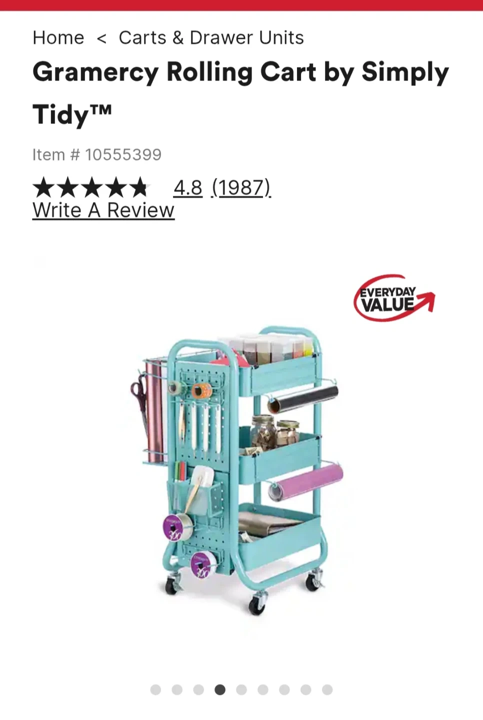 Metal Utility Rolling Cart π Teal