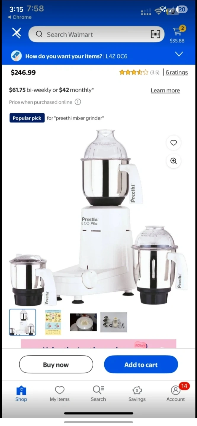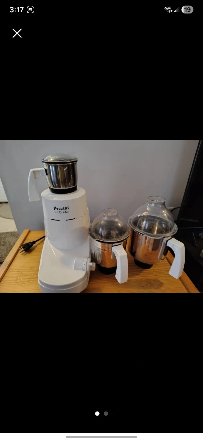 This is a Preethi Eco Plus mixer grinder. It comes with three stainless steel jars. It's a handy appliance for any kitchen!
