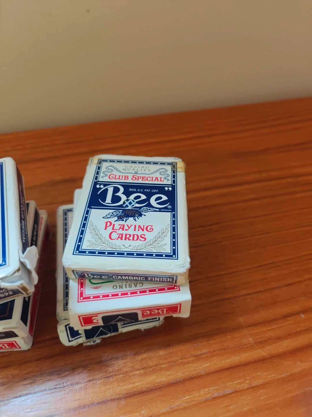 These are Bee Premium Club Special playing cards. They have a genuine "feel" of the original Bee cards. Made in U.S.A. Standard poker size. "Bee" cards are known for their cambric finish for smooth handling.
