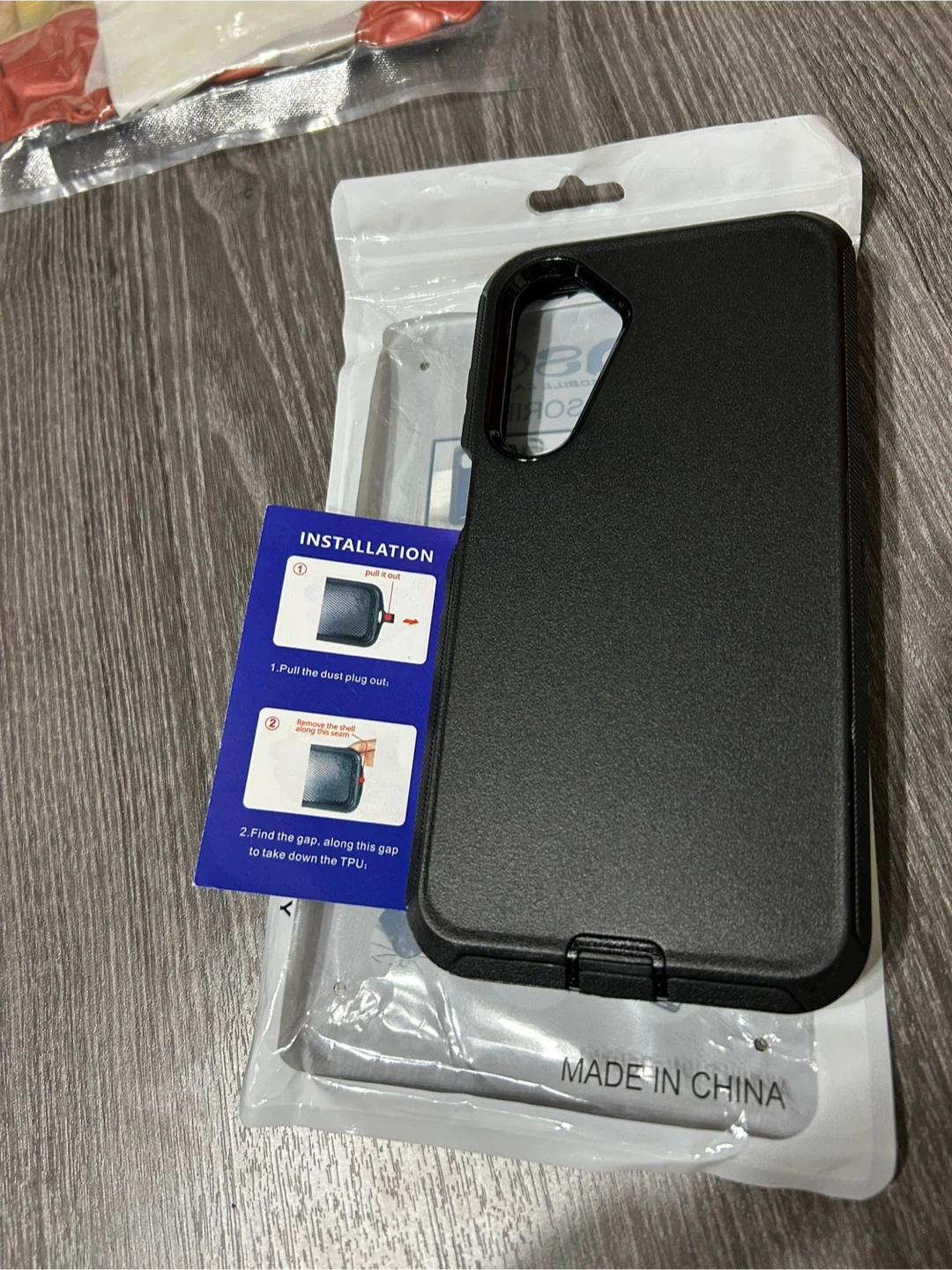 New Durable black phone case for a Samsung A16 5G. It's made from a tough material to protect your phone. Installation instructions are included.