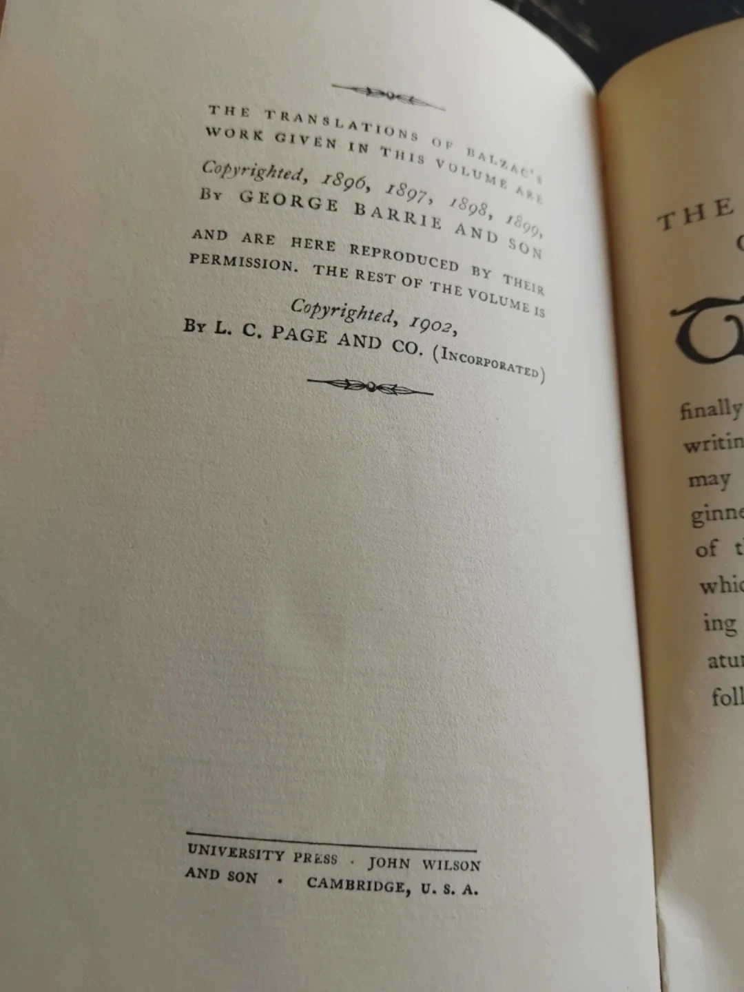 15Selling a copy of De Balzac, copyrighted in 1896, 1897, 1898, and 1899 by George Barrie and Son. The rest of the volume is copyrighted in 1902 by L.C. Page and Co.