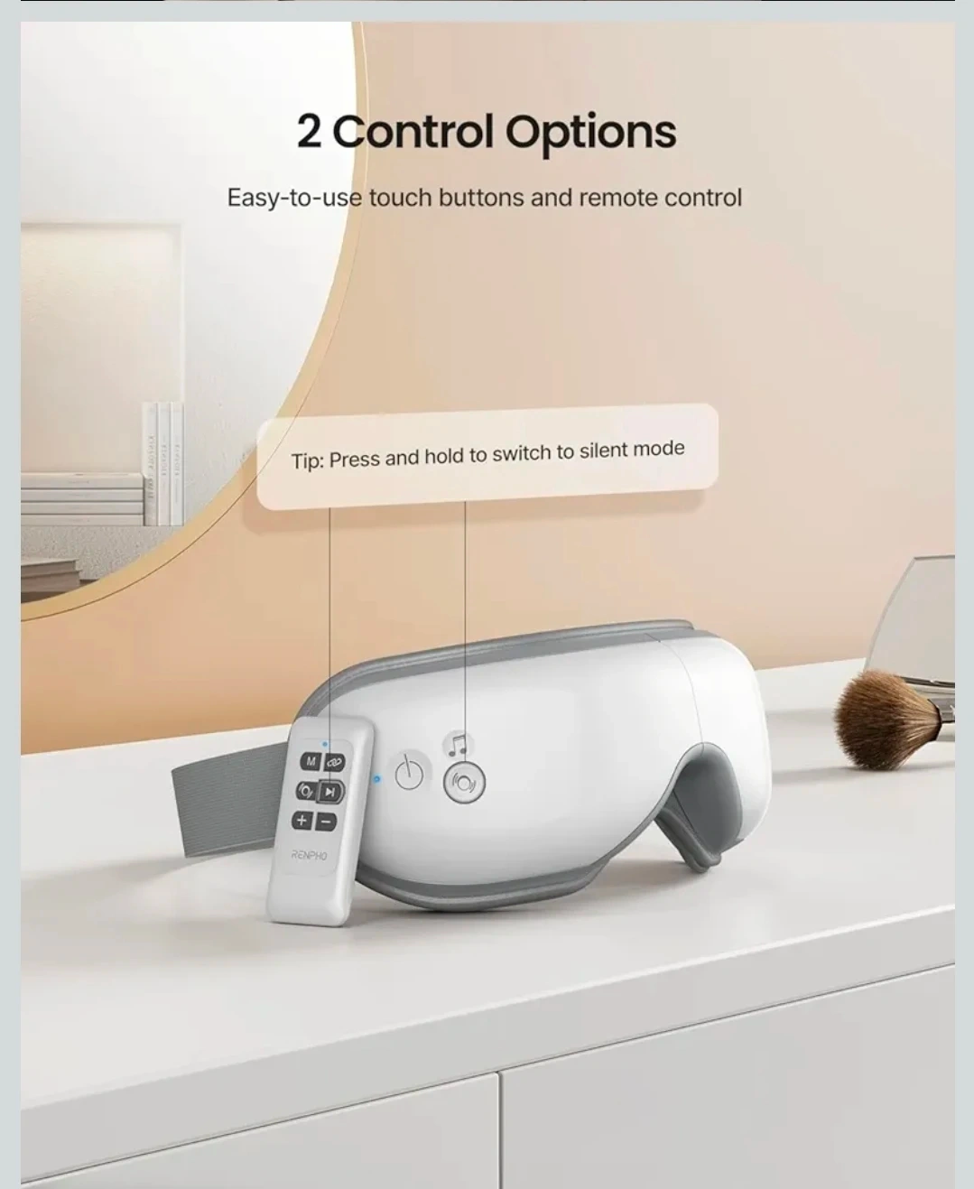This RENPHO eye massager offers 2 compression and heat comfort levels to soothe muscle tension around the eyes. It features easy-to-use touch buttons and a remote control for operation. Enjoy an immersive music experience via Bluetooth for relaxation. It helps maximize eye cream absorption around the contour of your eyes. This device could be useful for anyone seeking to relax and rejuvenate their eyes after a long day.