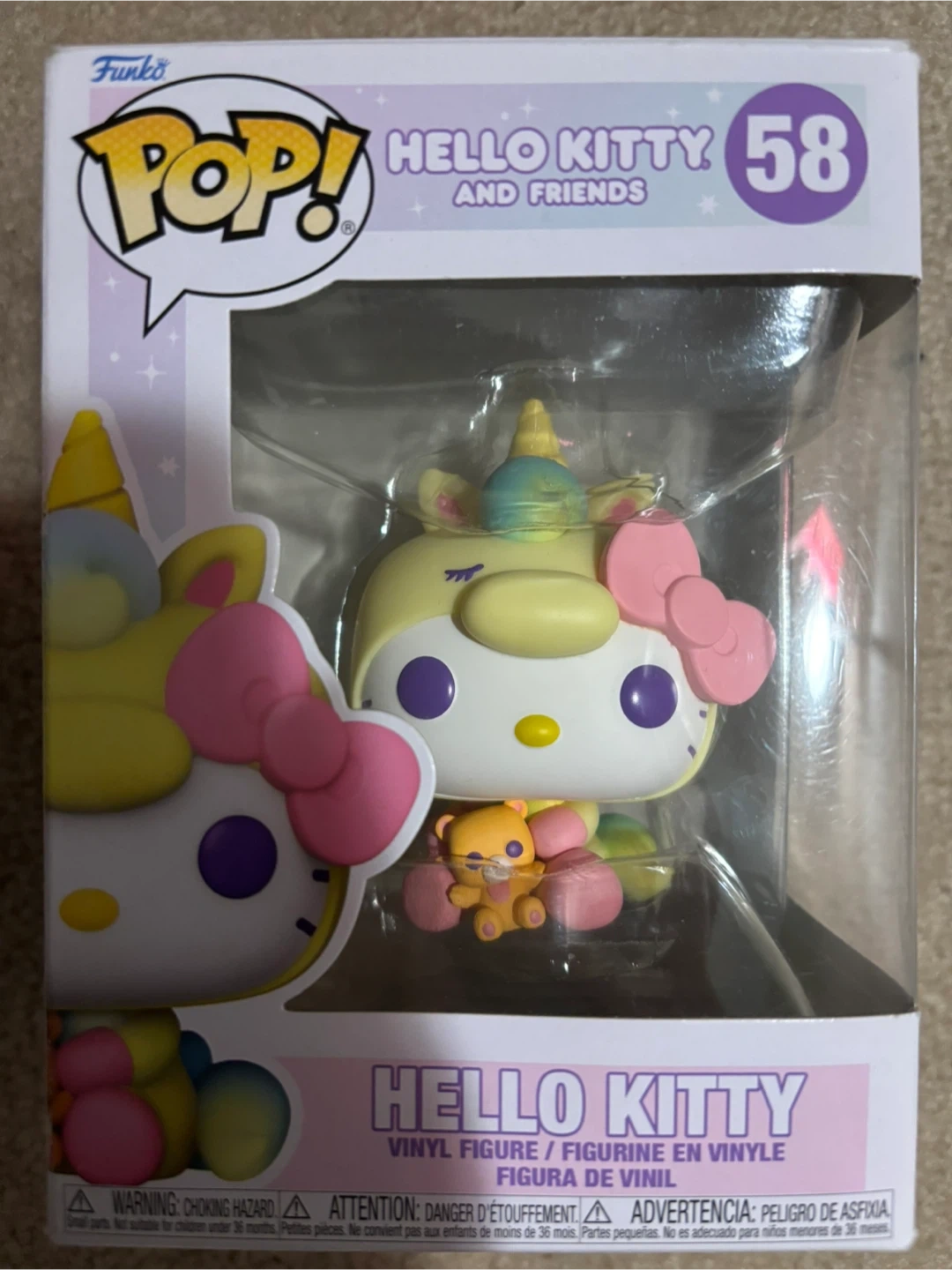 This is a Funko Pop! vinyl figure of Hello Kitty and Friends, number 58. It's a collectible figurine with vibrant colours. This item is not suitable for children under 36 months.