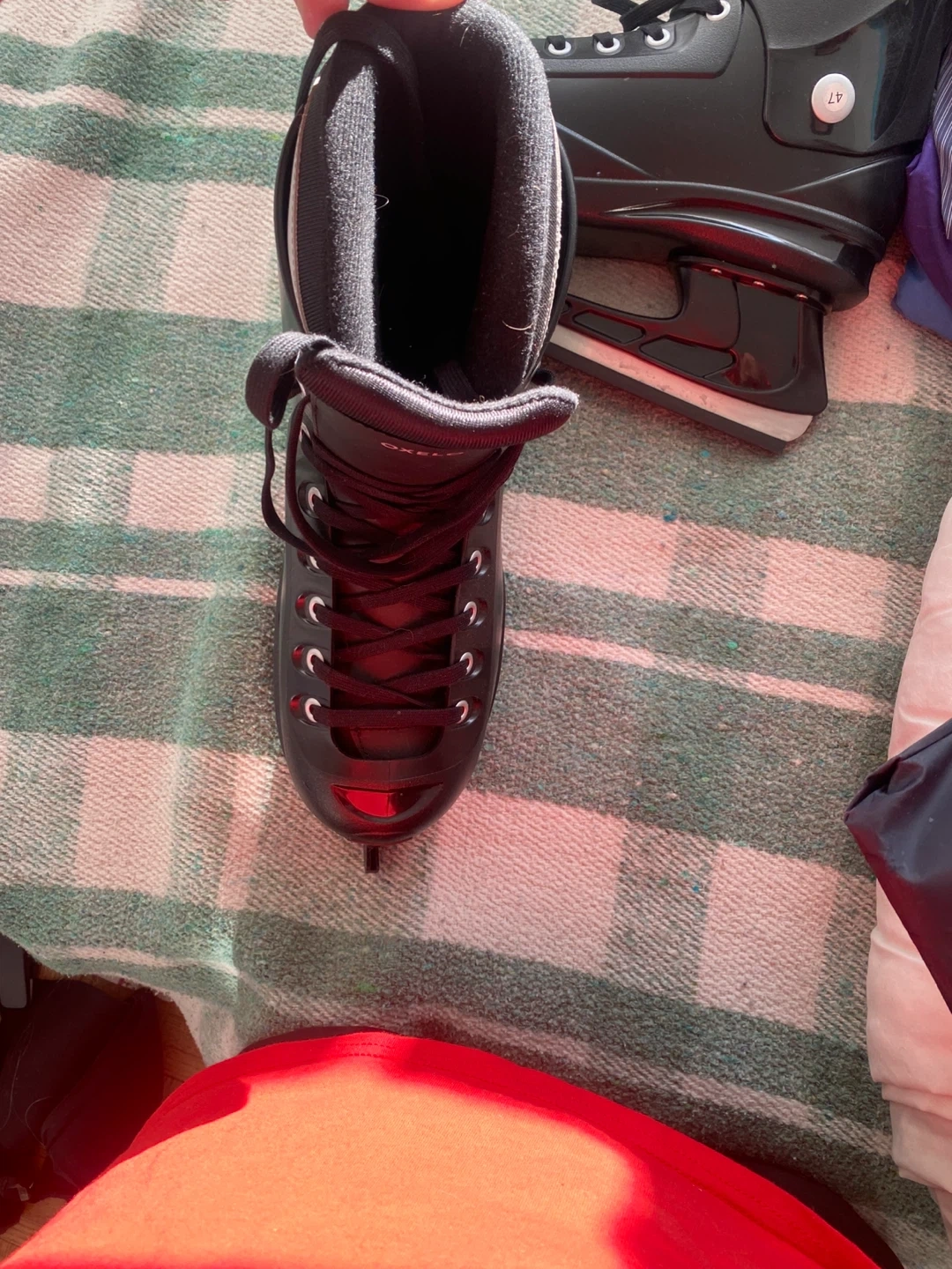 131Selling a pair of Decathlon adult ice skates in black. They are a size US 13. The label indicates they are also EU size 47 and have a 300mm length. Great for hitting the rink!