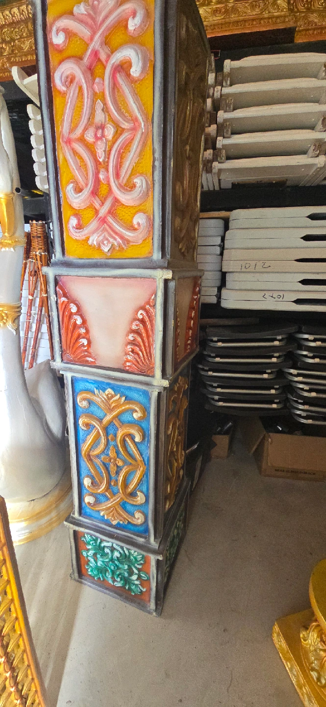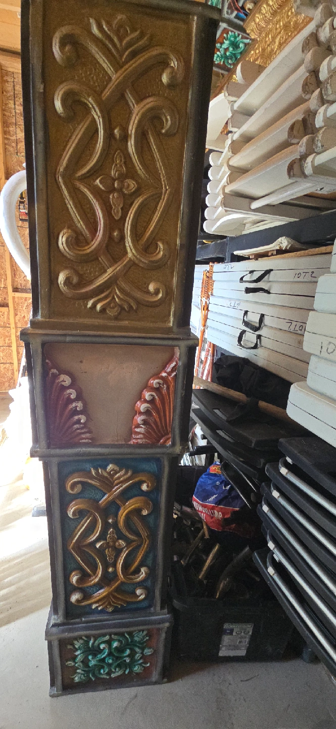 10Selling a decorative column or pillar with a unique ornate design. It features multiple tiers with different patterns and colours, adding a touch of elegance to any space. Perfect for interior decoration or as a statement piece in your home. fiberglass 5.6 feet tall got as set. both for 400 or best offer