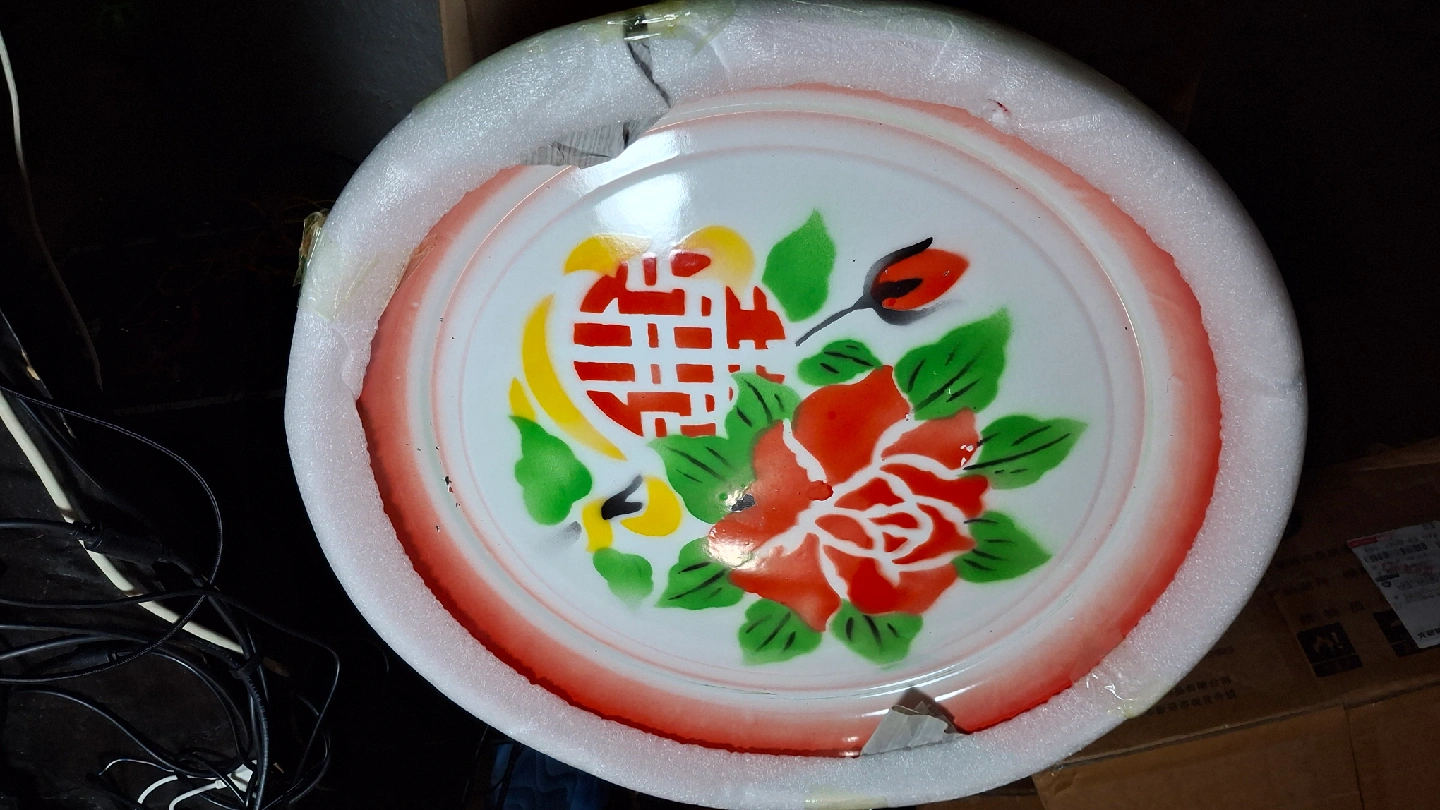 1000+Selling a decorative enamel tray featuring a vibrant floral design with red, green, and yellow accents! It's in great condition and ready to add a pop of colour to your home 50cm diameter