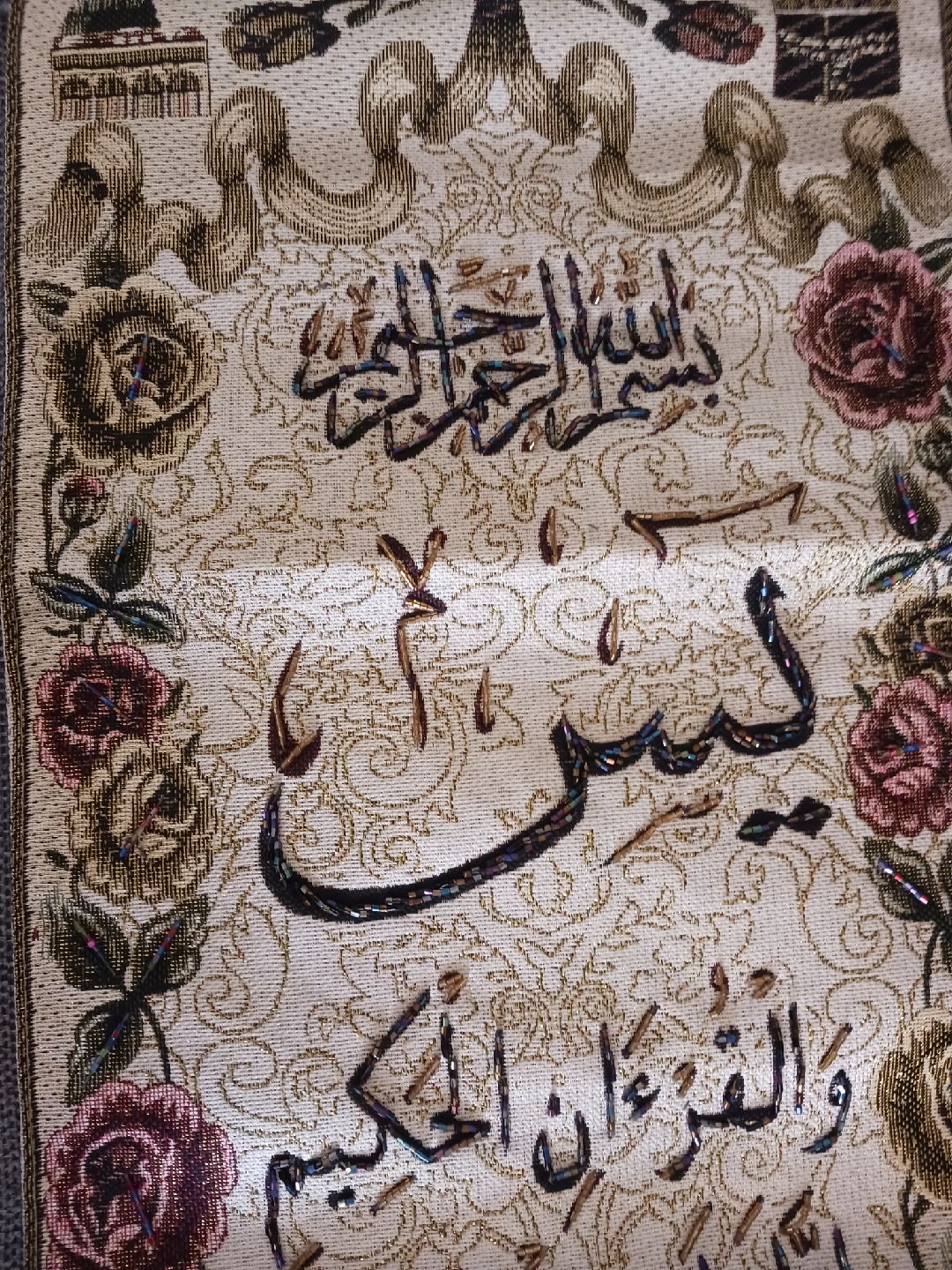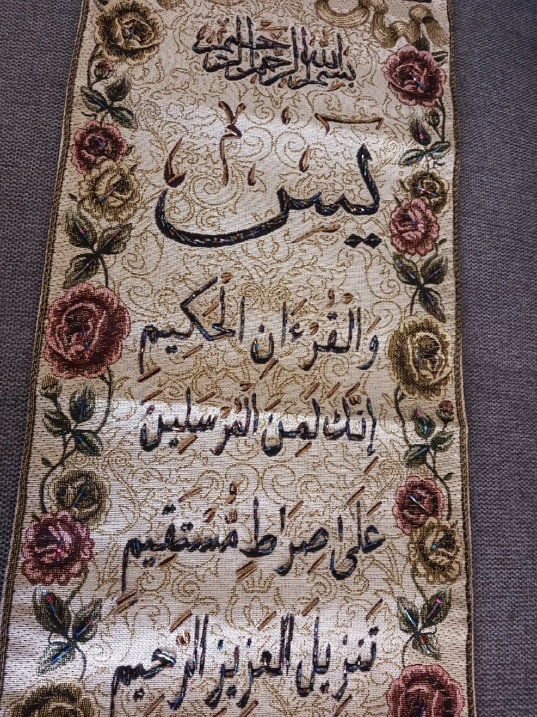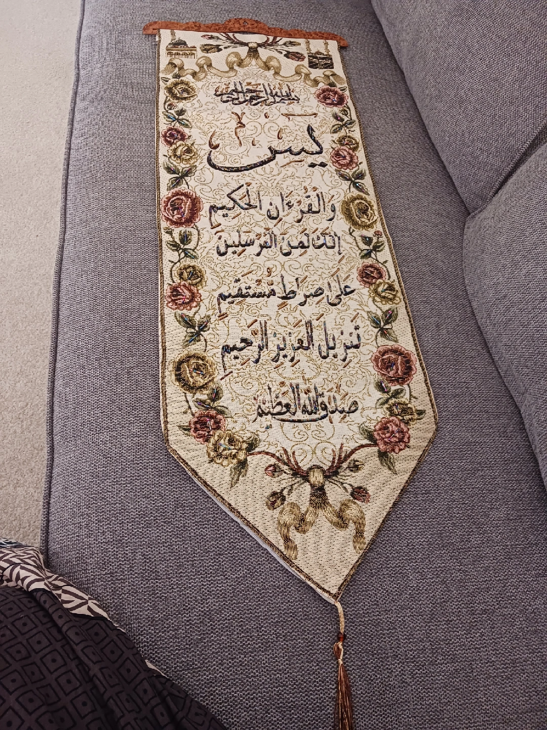 Beautiful tapestry with floral design and Arabic calligraphy, perfect for adding a touch of elegance to any room