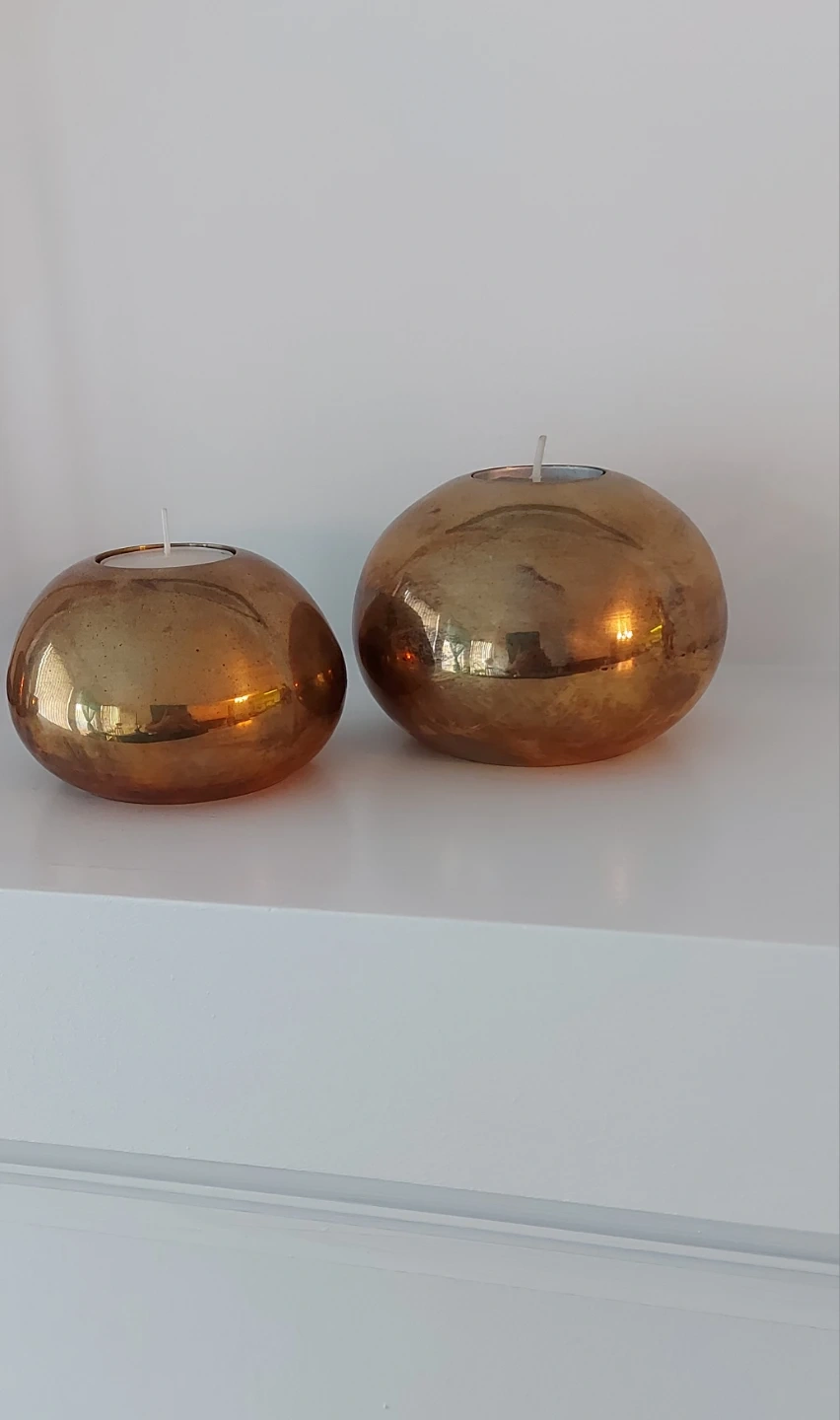 10Selling a set of two decorative brass candle holders. They're a lovely gold colour and in great condition. Perfect for adding a touch of warmth to any room!