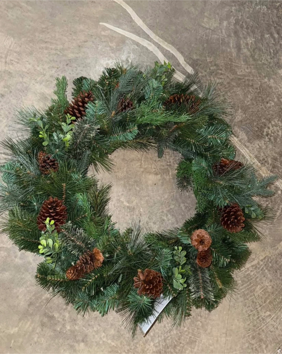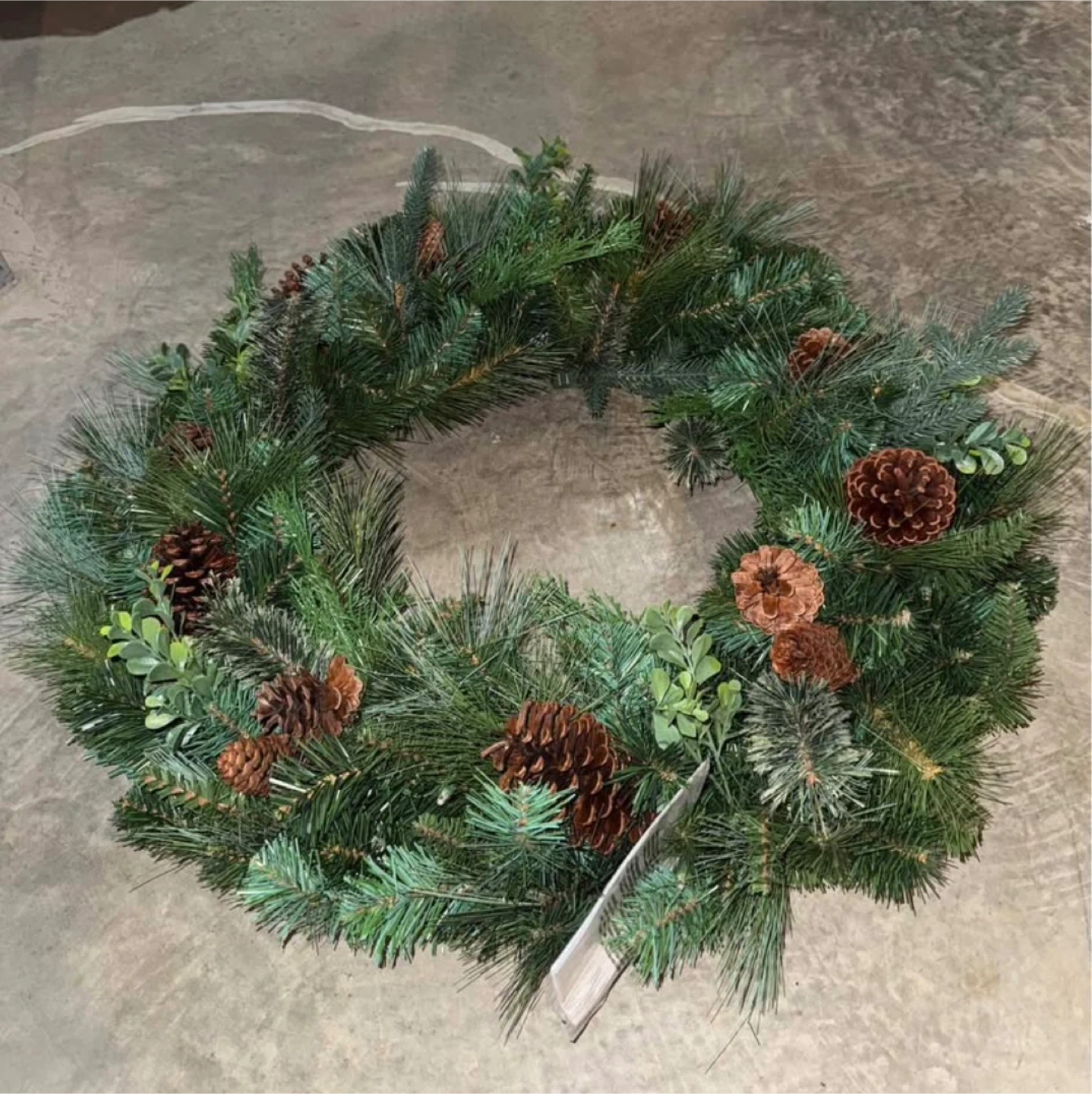 Selling a lovely Christmas wreath decorated with pine cones. It's perfect for adding a festive touch to your front door or any room in your home. It's in great condition and ready to bring some holiday cheer!