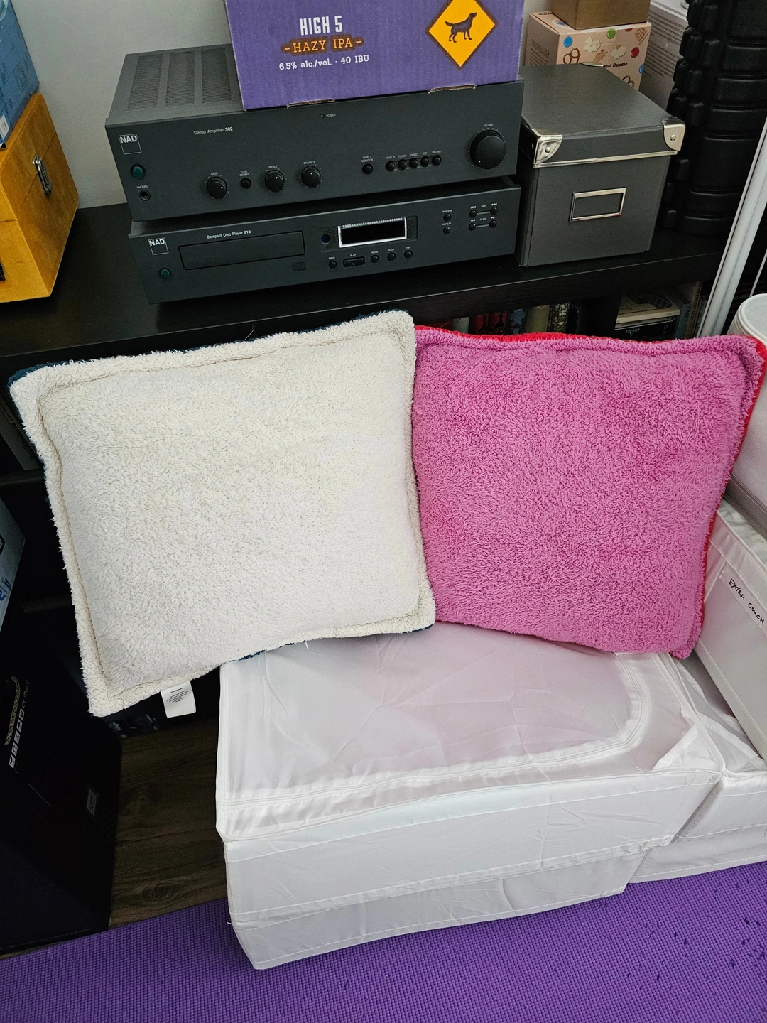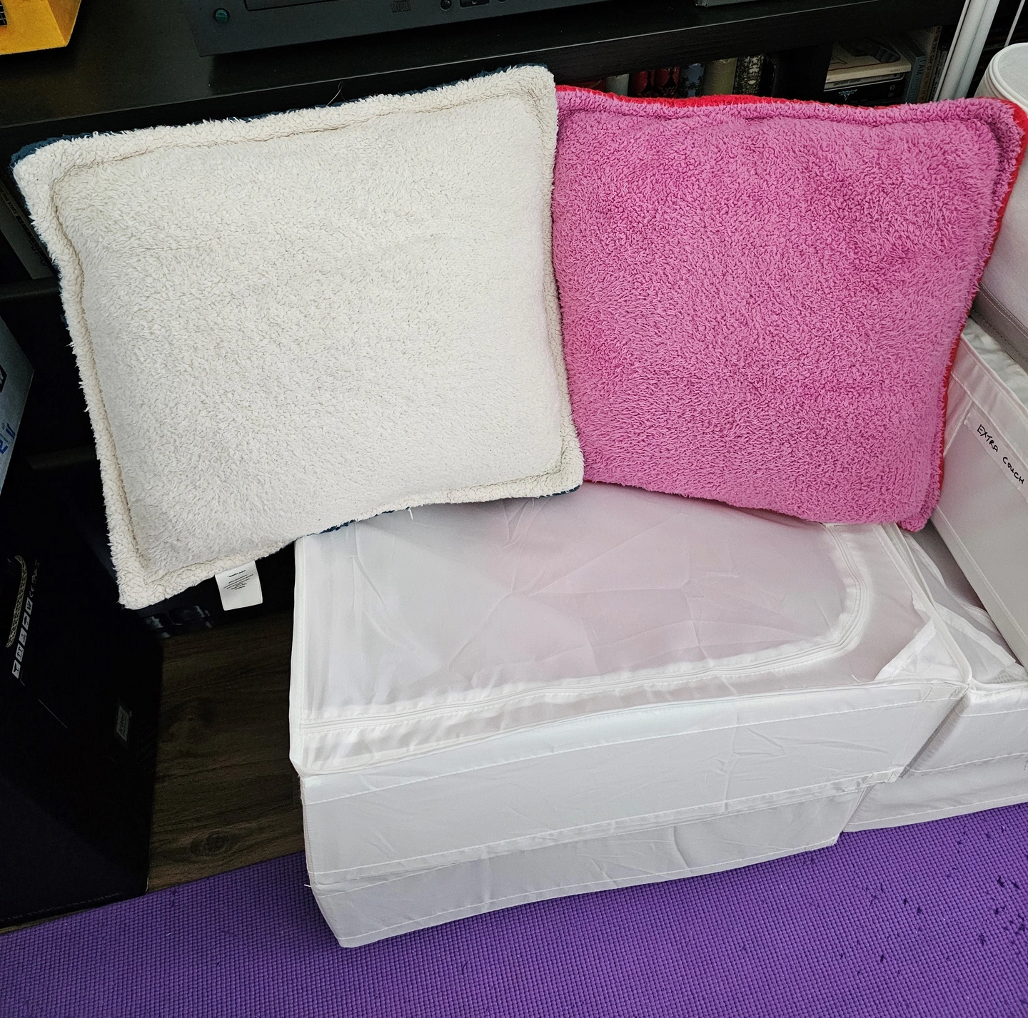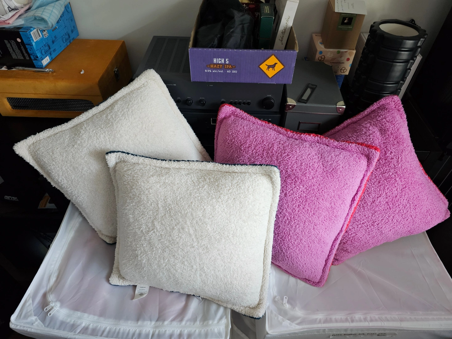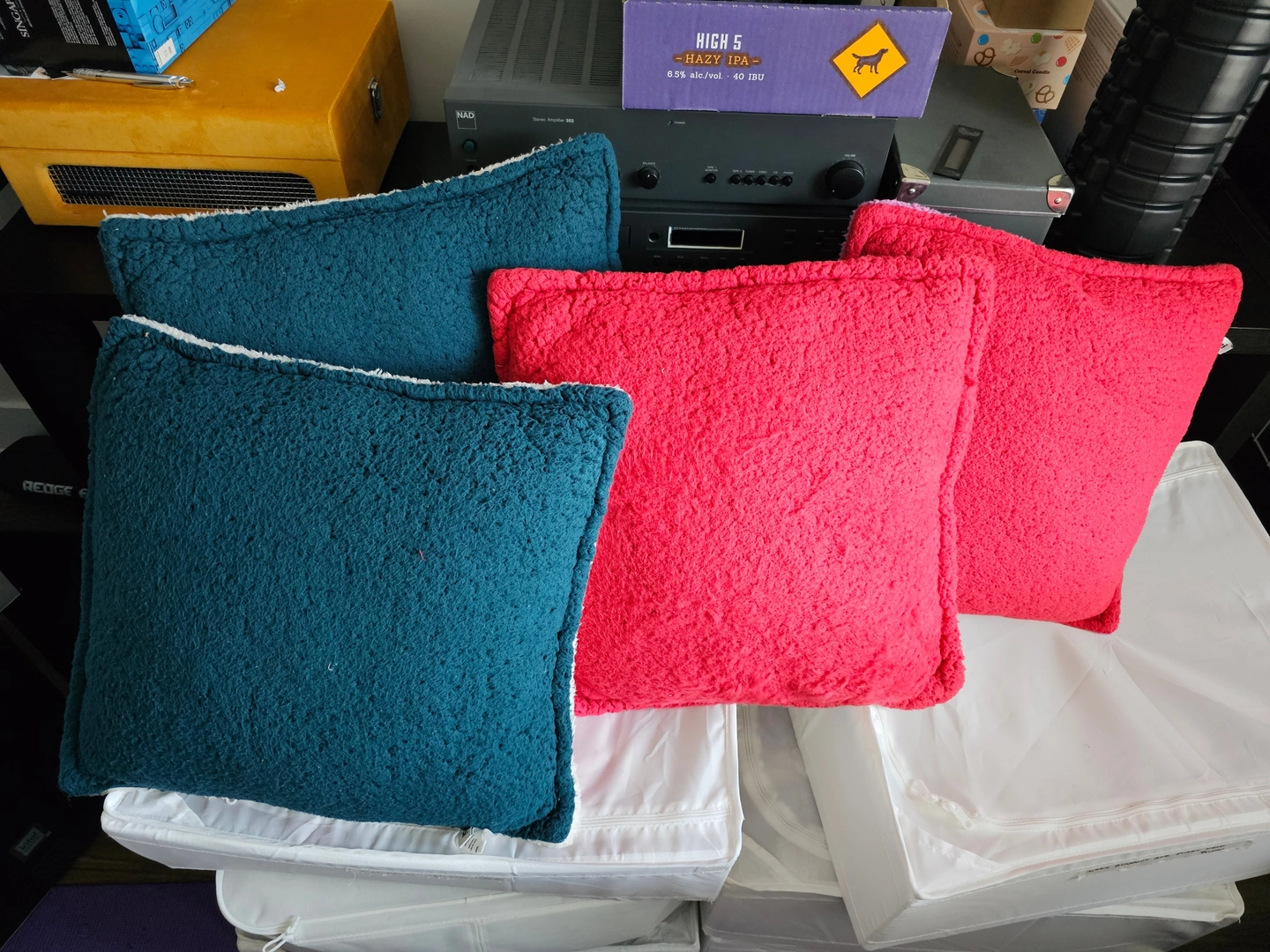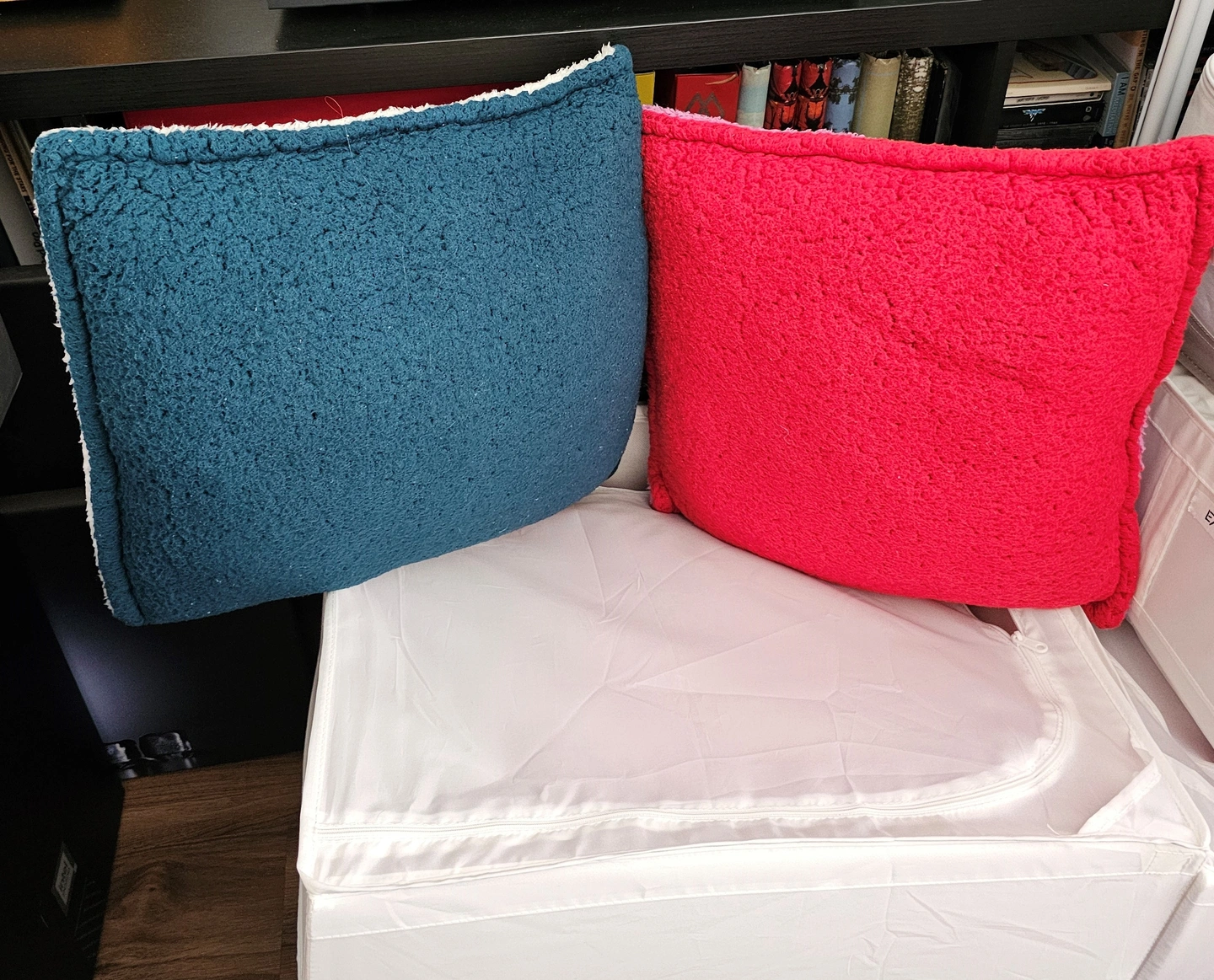 76~ IN THE SOUTH SURREY/WHITE ROCK AREA ~ You get a set of Four (4) matching decorative Pillows! ~ There is a set of two (2) matching decorative "Green Colored Pillows that can be reversed to White on the other side, and and Two (2) decorative "Red Colored Pillows that can be reversed to a "Plum" color on the other side. ~ You also get a "FREE" IKEA SKUBB storage for each set of pillows. (see pictures) ~ GREAT DEAL for all items! ~ In clean, condition!!! ~ Pillow size is approximately 20 inches X 20 Inches each. ~ Get this set of decorative pillows for Seasonal Decoration or for every day on your Living room couch, in your Den, Kids Room, Extra Room or Dorm Room!!!! ~ No tax to pay or shipping. ~ Cash & you pick up. ~ Serious Buyers & No Low Ballers please. *** NOTE *** Please see my other listings as I am currently selling many household items such as Queen Size Pillow Cases and Duvet Covers, Backpacks, Bathroom Mats, Duffle Bags, Suitcases, Shoe Storage, Lots of various sizes of BRAND New Picture Frames etc.