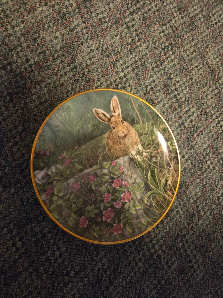 15Selling a decorative plate featuring a charming rabbit design. It's in great condition and would look lovely on display