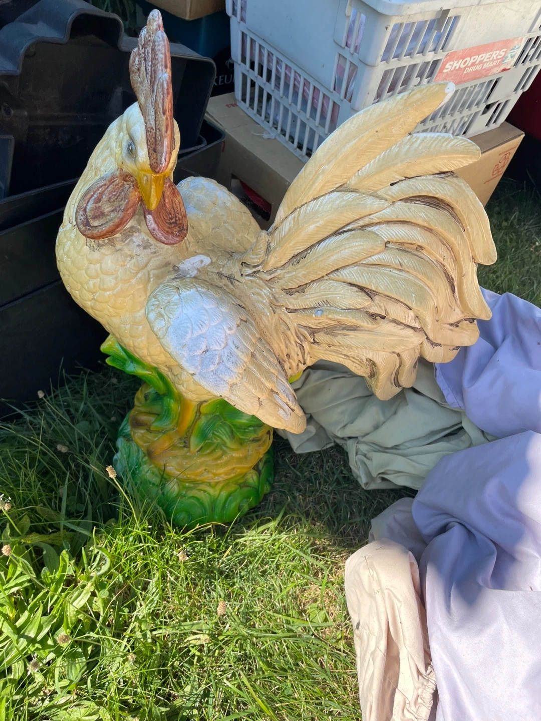 Here's a charming decorative rooster statue! It's perfect for adding a touch of country flair to your garden or home decor.