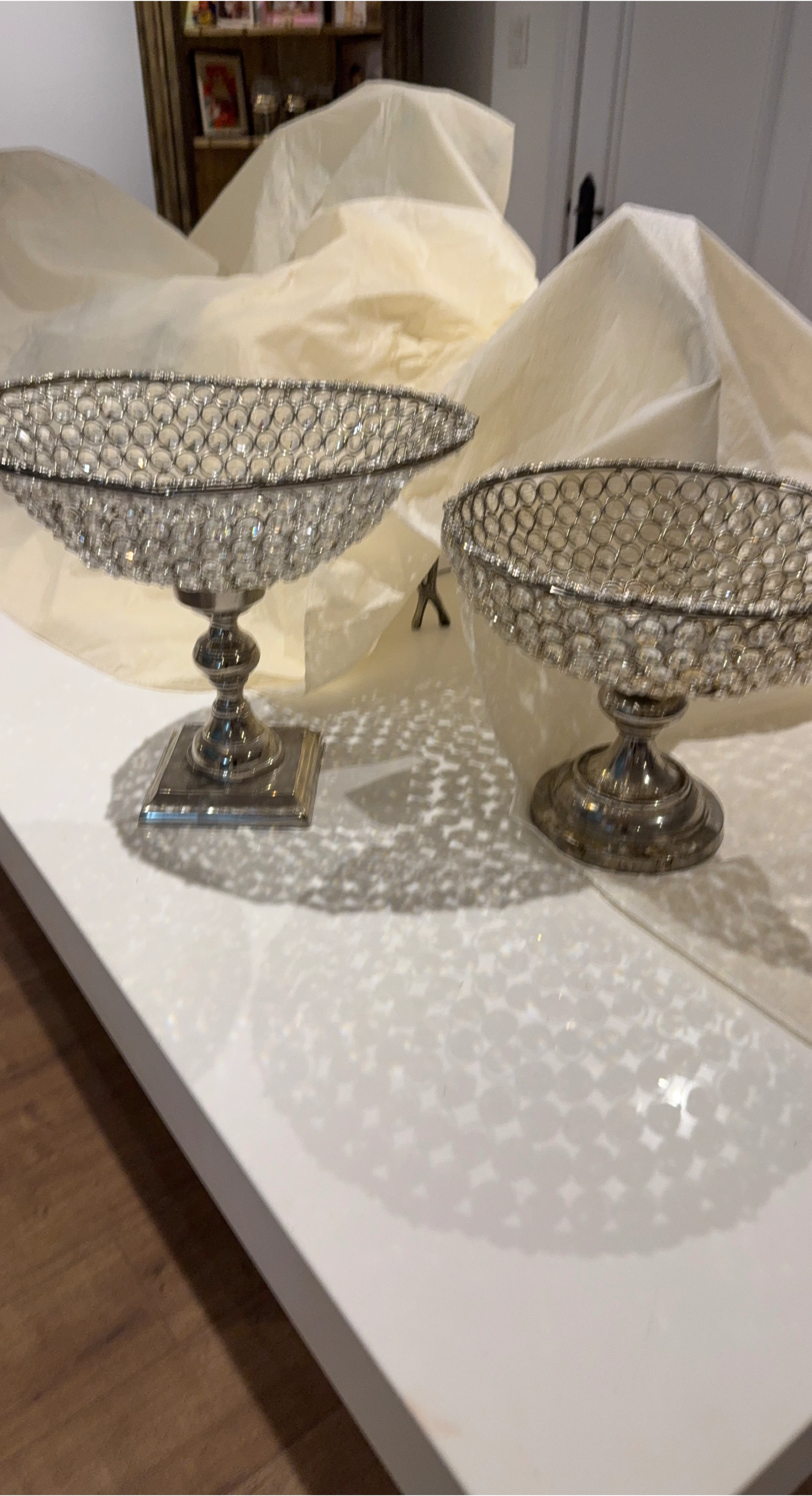 Selling a set of two decorative silver beaded bowls. They are in great condition and would look lovely as a centrepiece or accent piece in any room. The silver finish adds a touch of elegance to any space!