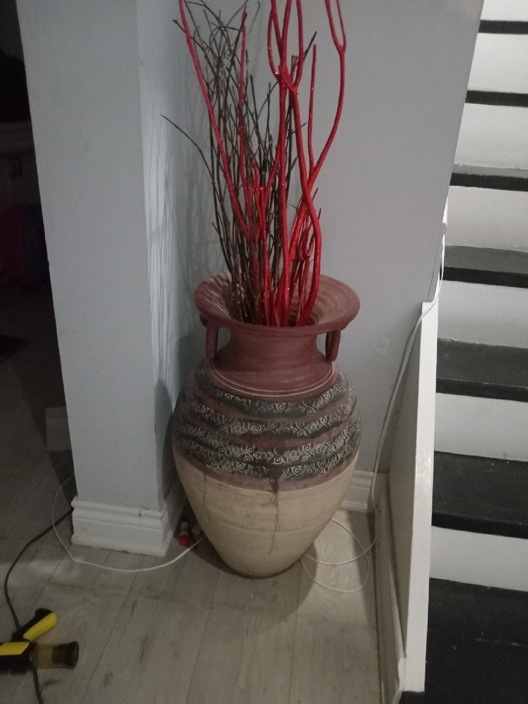 15A beautiful decorative vase with a unique design, perfect for adding a touch of elegance to your home. It comes with a set of decorative branches to complete the look. The vase has a textured pattern and a warm colour palette that would complement any room's decor