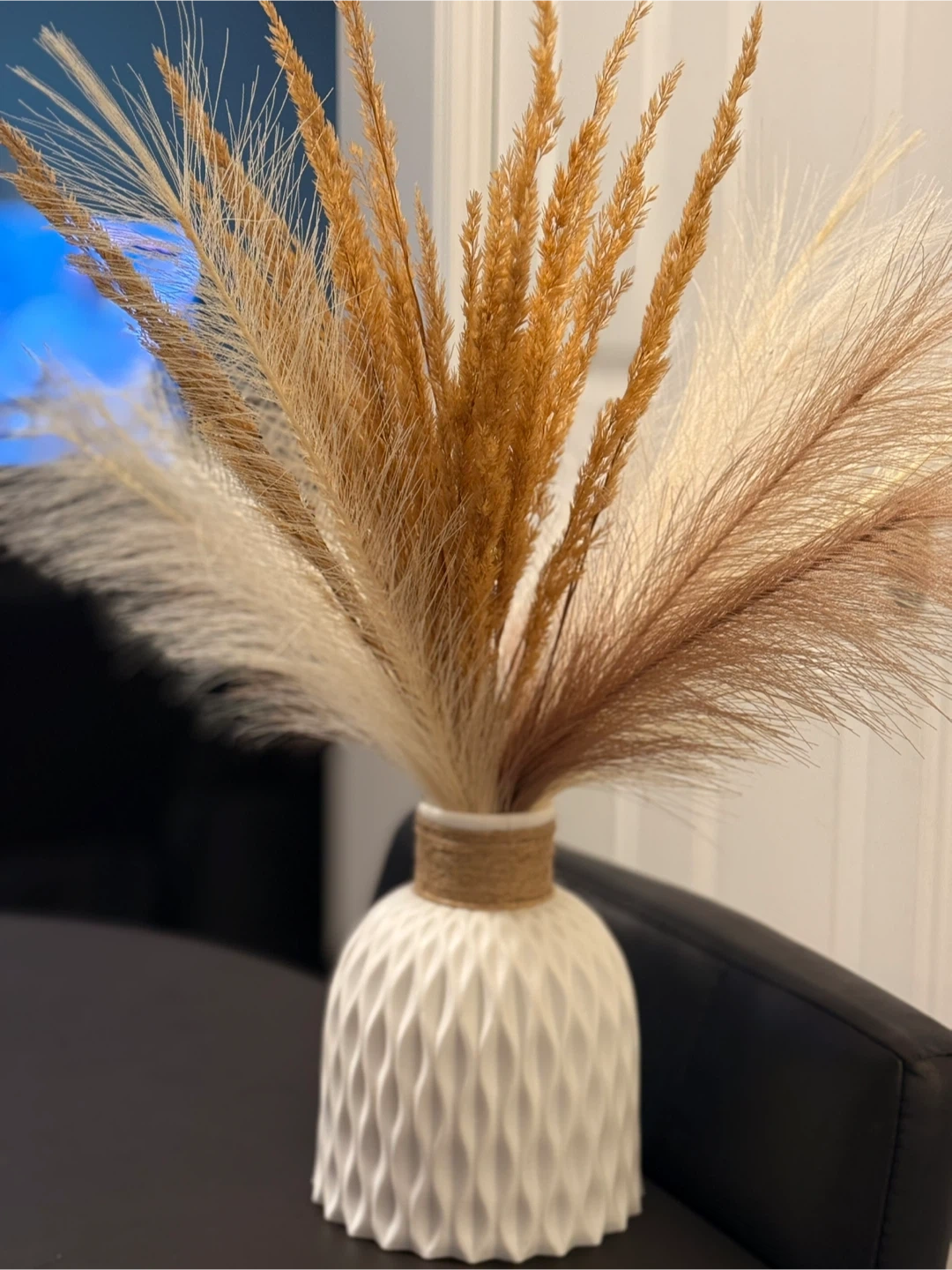 Add a touch of natural elegance to your home with this lovely vase and pampas grass arrangement! The vase has a unique textured design, and the pampas grass adds a soft, airy feel. Perfect for any room! AS-IS.
