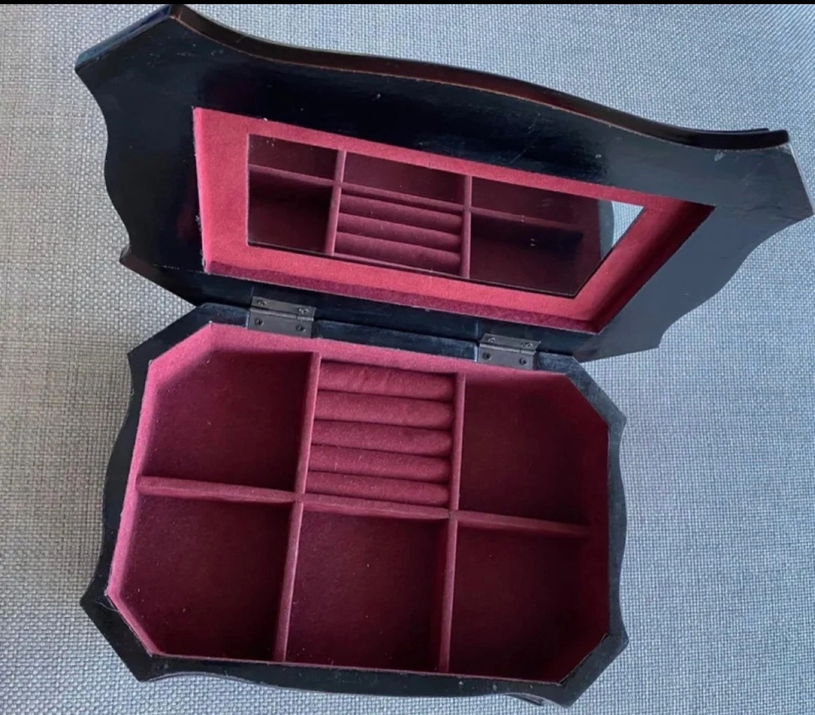 Red Wooden Jewellery Box with Mirror