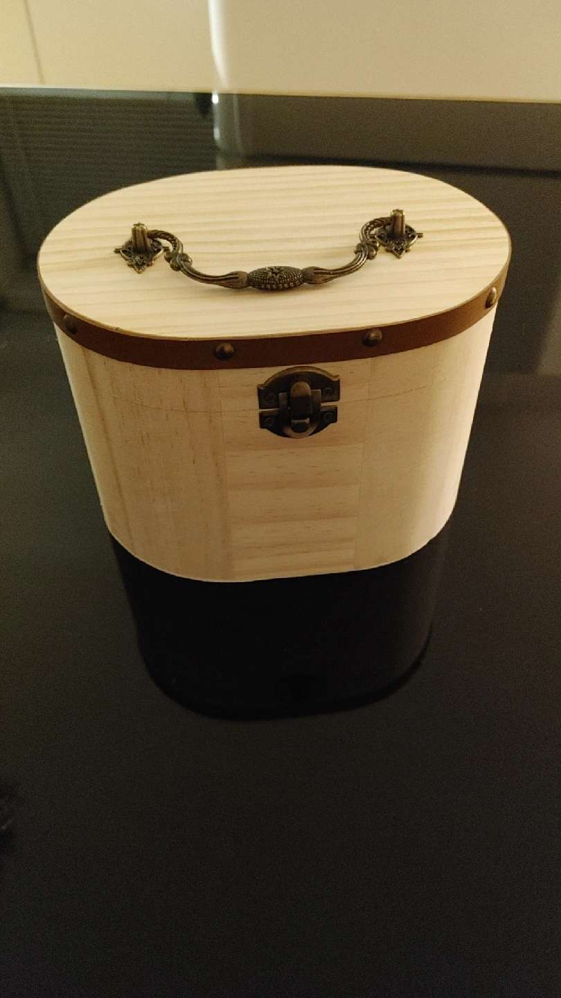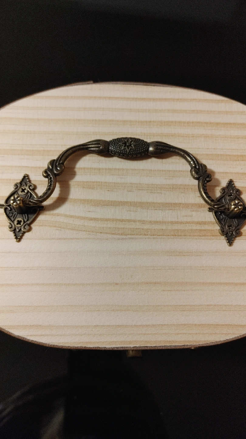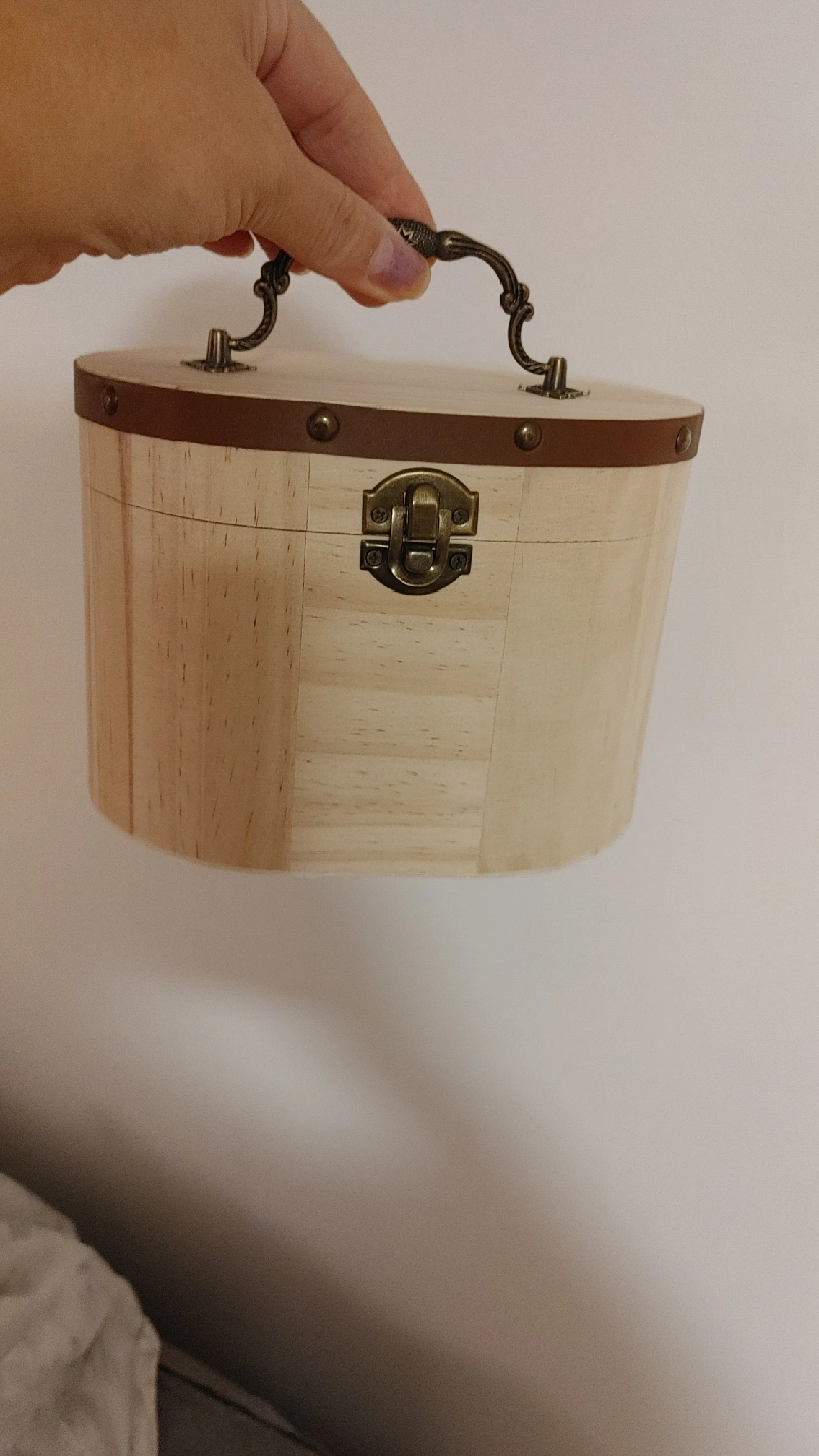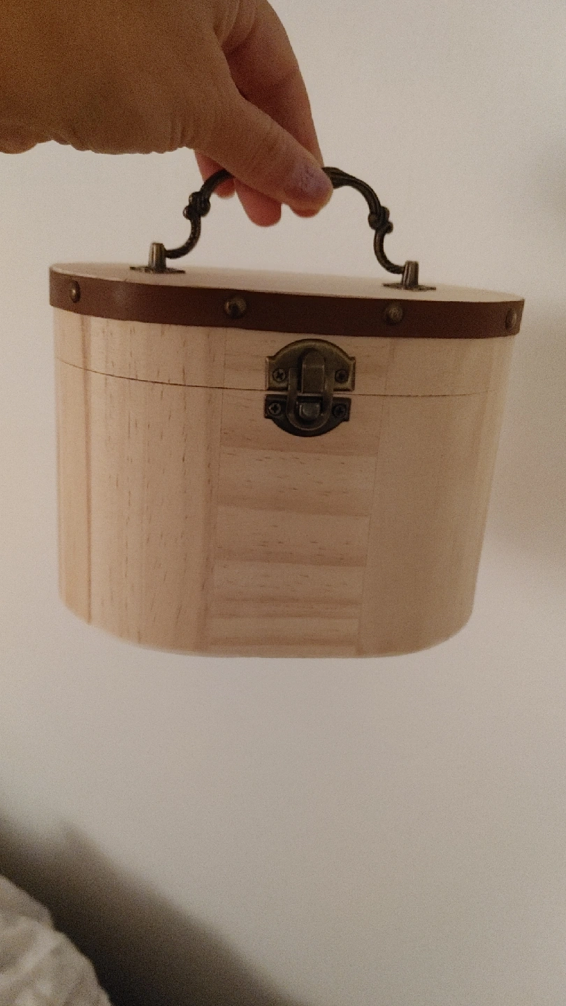63Selling a cute wooden storage box! It's got a unique oval shape and a decorative metal handle. The box is toned, with a light wood Perfect for storing small items or adding a touch of vintage charm to your space! Dimensions 7" x 5" x (5" tall)