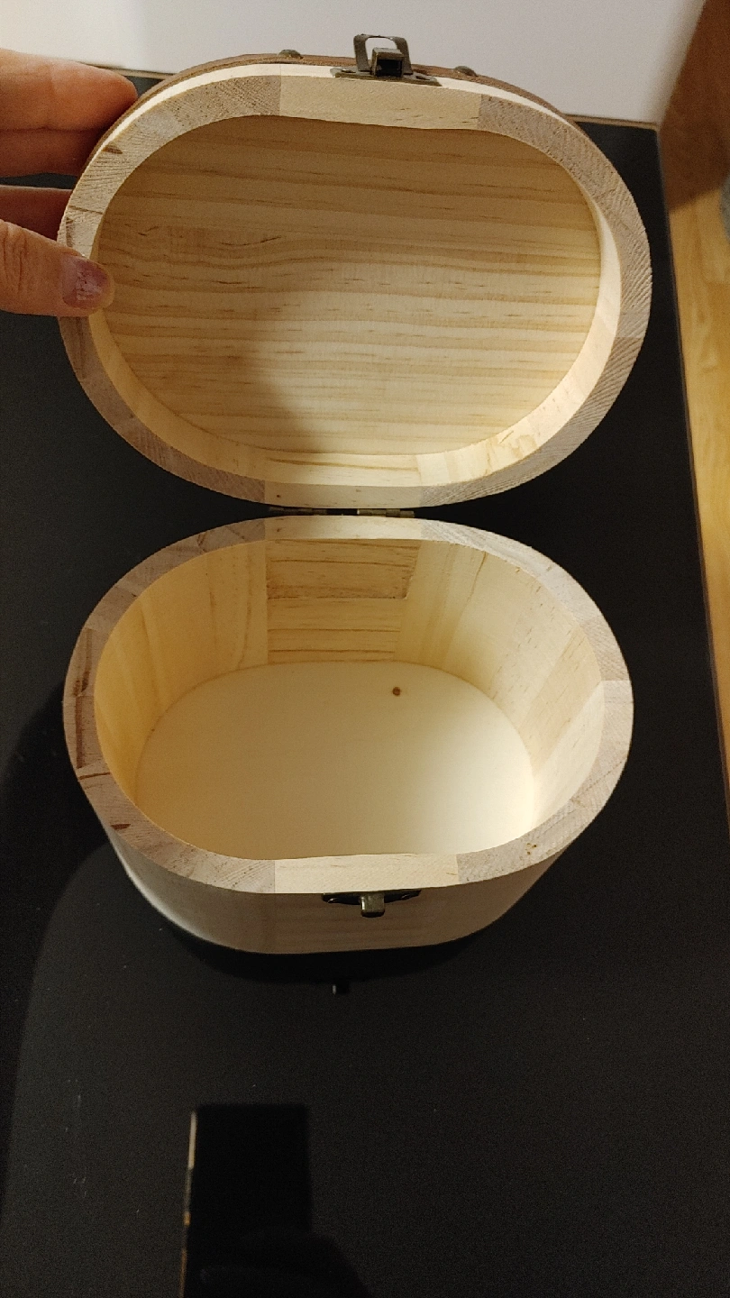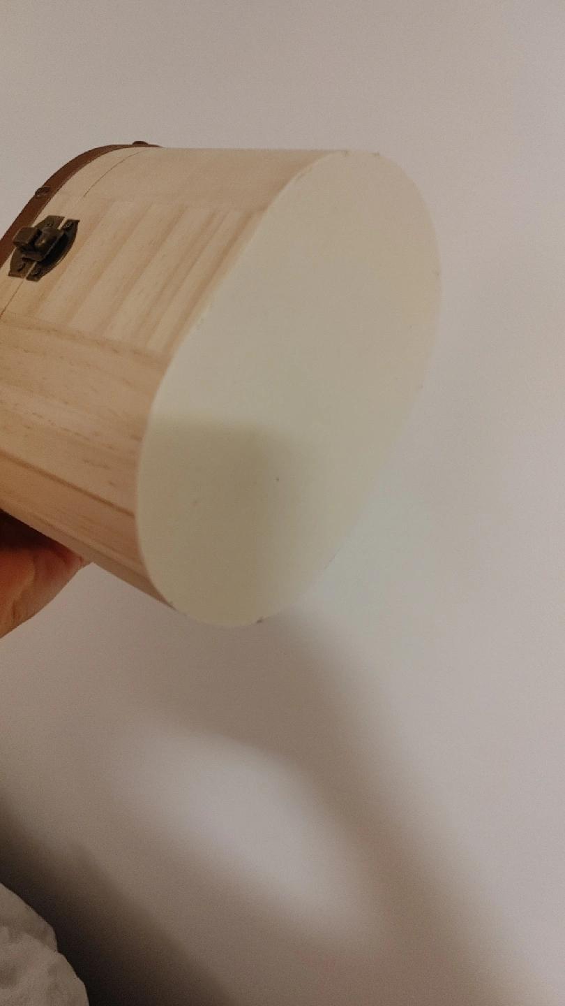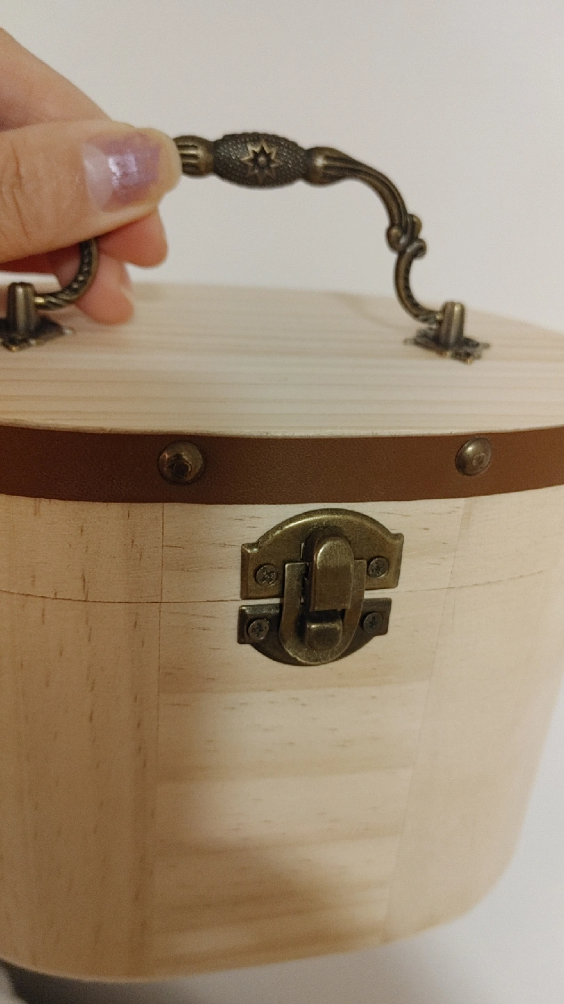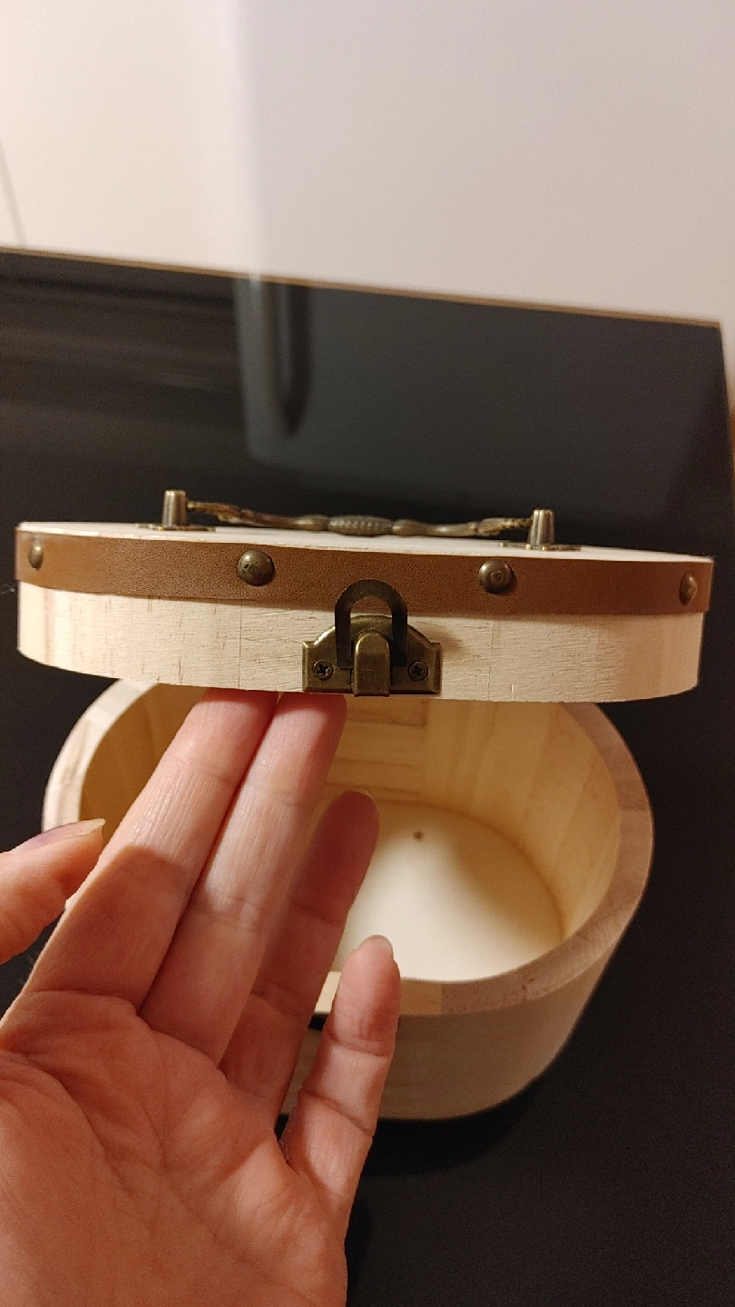 63Selling a cute wooden storage box! It's got a unique oval shape and a decorative metal handle. The box is toned, with a light wood Perfect for storing small items or adding a touch of vintage charm to your space! Dimensions 7" x 5" x (5" tall)