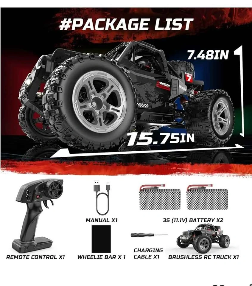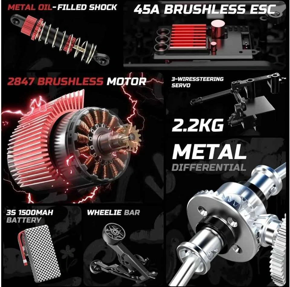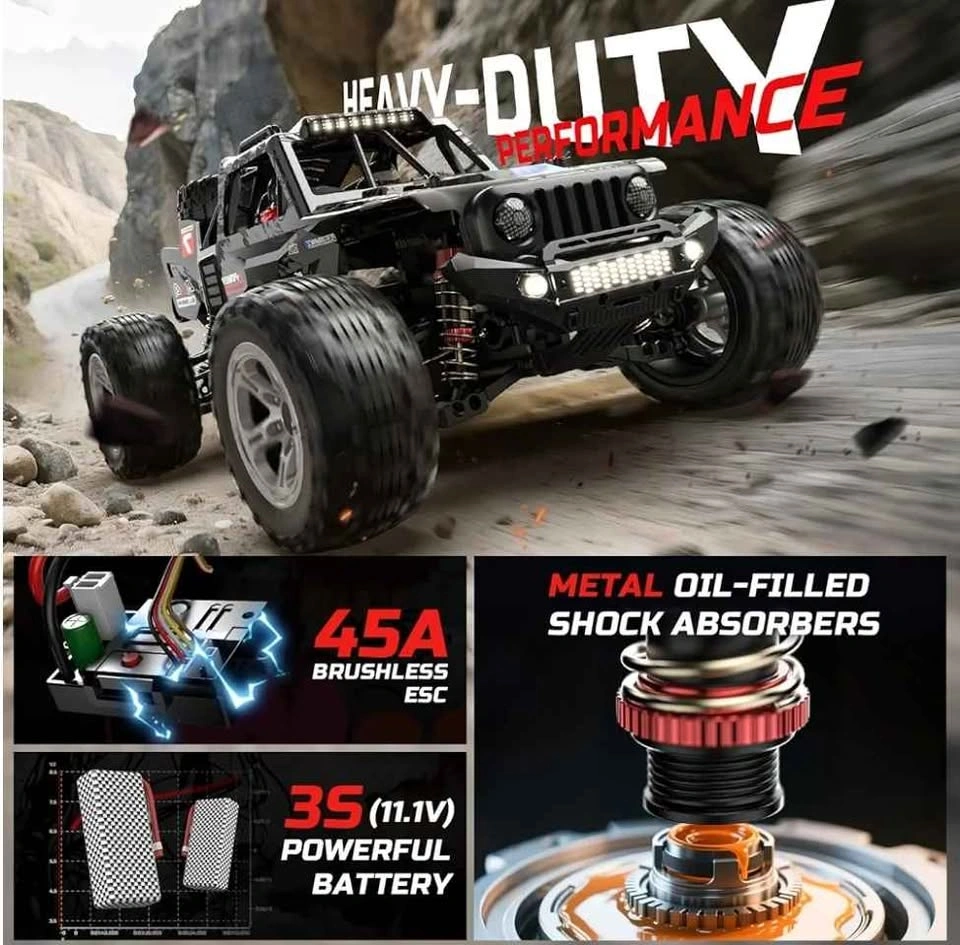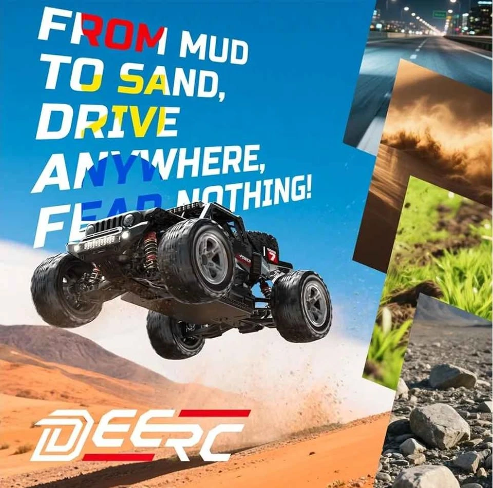 DEERC 207E 1/10 Brushless RC Car for Adults, 55+KMH 4WD Hobby Electric Off-Road RC Monster Truck, Hobby Grade Waterproof High Speed Remote Control Rally Car, 4X4 RC Vehicle with 3S Batteries for Adult 14+