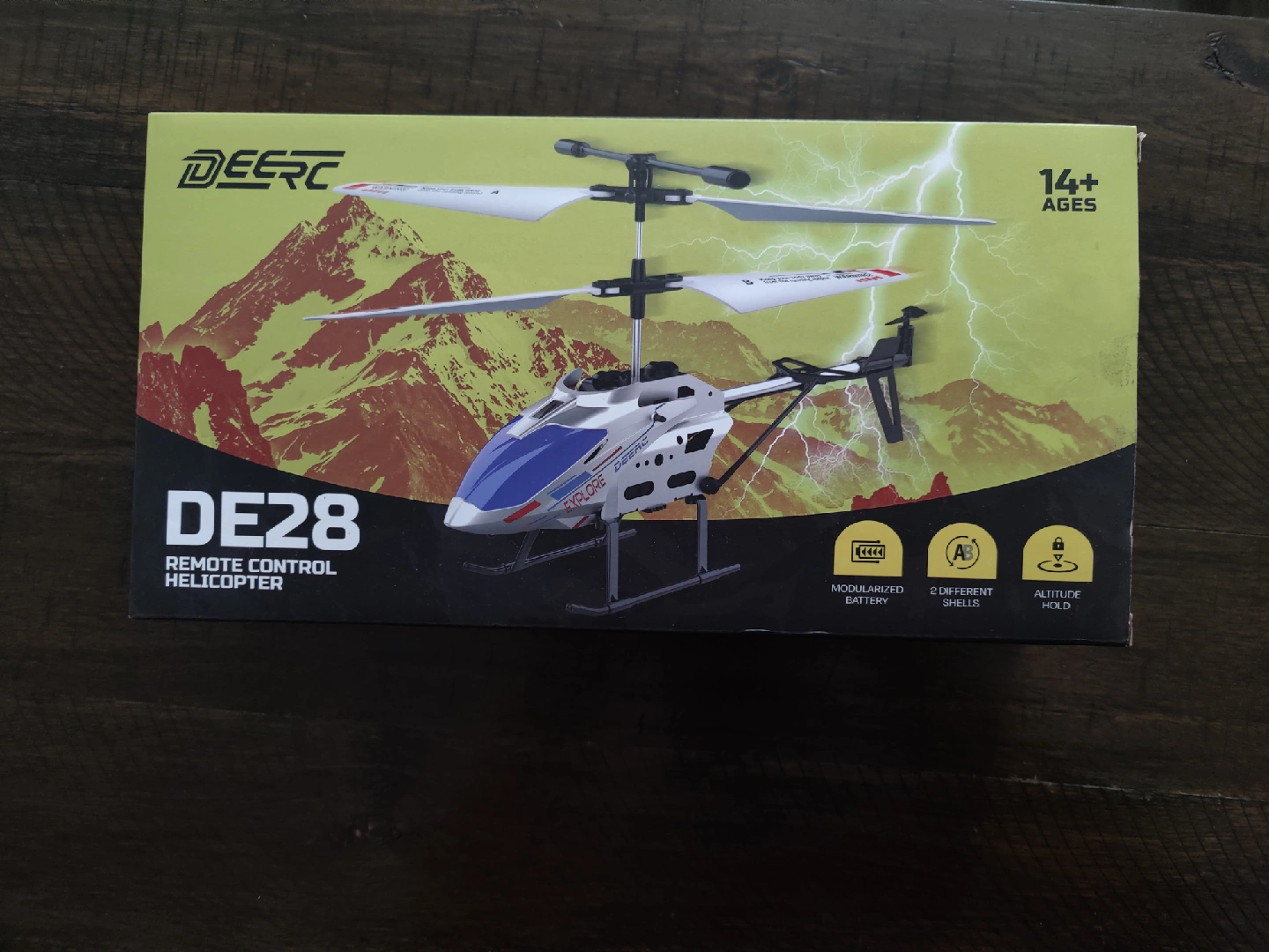 189Selling a one time used DEERC DE28 remote control helicopter, still in its original packaging! It's perfect for ages 14+. This helicopter features a modular battery, different shells, and altitude hold. $45+ on Amazon