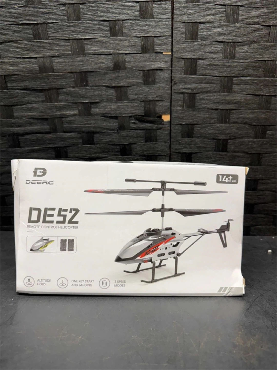 75Selling a brand new DEERC DE52 remote control helicopter, still sealed in its original box! This cool helicopter features altitude hold, one key start and landing, and 2 speed modes. Perfect for ages 14+ for some fun flying adventures