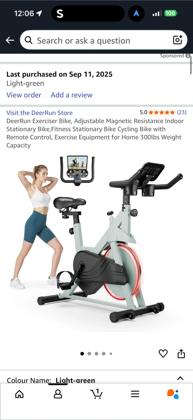 Get ready to cycle in style with this DeerRun exercise bike! It features adjustable magnetic resistance, perfect for indoor workouts. It's a stationary bike with a remote control and can handle up to 300lbs. The colour is light-green. The box is included!