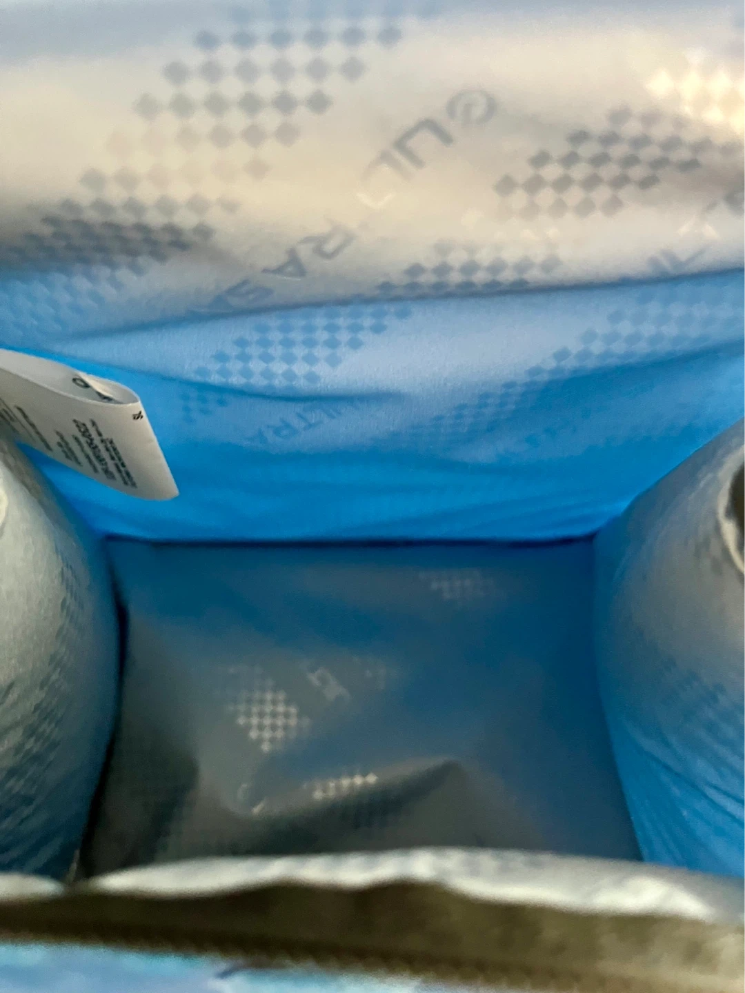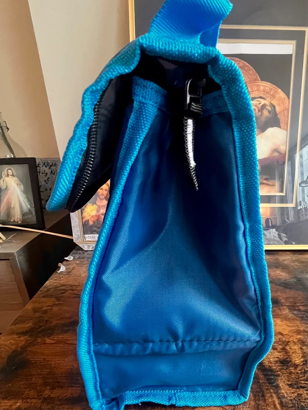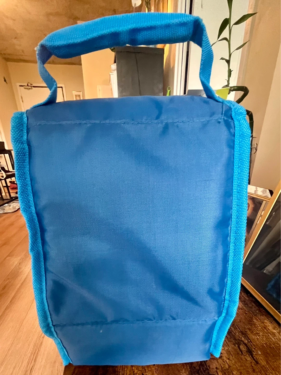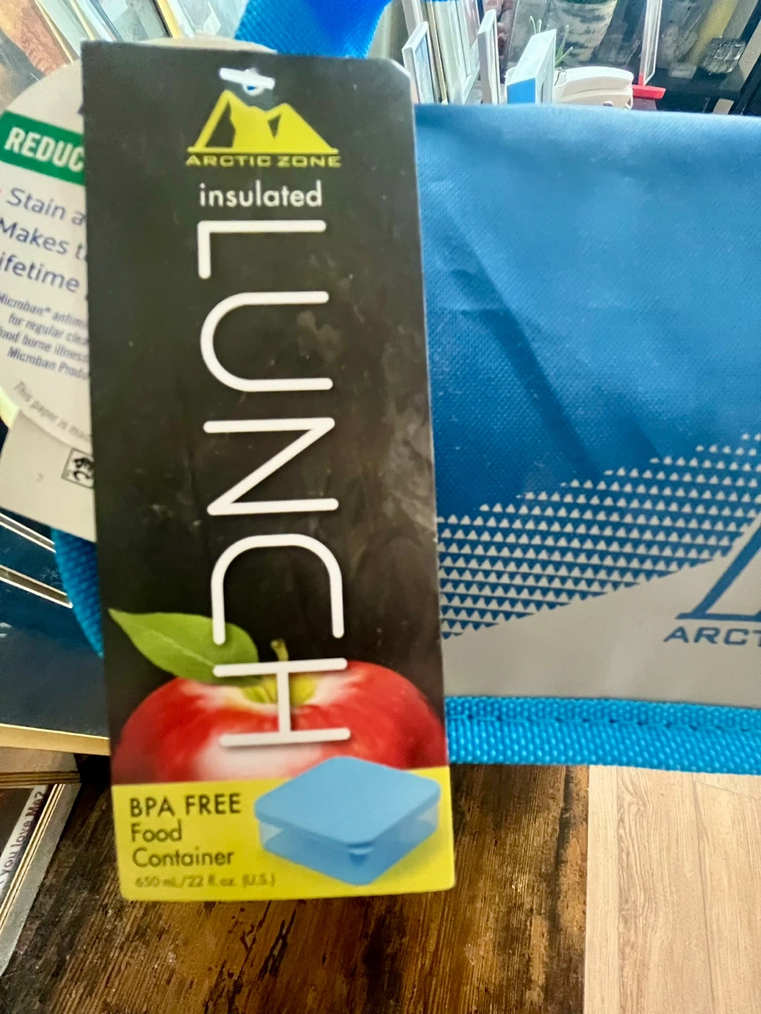 This Arctic Zone lunch bag is blue and features a pull-loop zipper for easy opening. It's insulated and made with Microban to reduce bacteria. The dual zipper allows for extra pocket capacity.